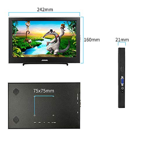 [Multi-interface:] JOHNWILL10.1 inch portable monitor: one HDMI input, it is a portable HDMI monitor. One DC12V input interface: can be used to power the portable monitor. One Input Audio: Audio signal input, transmission of audio signals to speakers. One VGA interface: for analog signals, images and sound. Built-in 1.5w speaker.