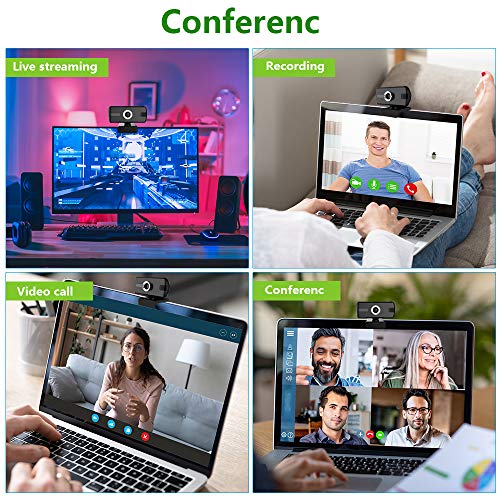 👪【Webcam with Microphone】:This newest webcam very suitable for webinars and video conferences. The built-in dual microphones have automatic noise reduction function, making the sound pure and clear, and high-quality stereo brings clear and natural sound. This is the best choice for video conference to output sound clearly in noisy environment.
