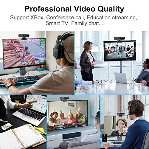 【FULL HD 1080P WEBCAM】 1920*1080 pixels, up to 30fps. Full HD 5-layer coating lens and full HD mean your recorded videos are crisp and vibrantly colored. Premium video quality that makes you look like a Pro. 76 degree wide angle enables you see everyone in the video conference.