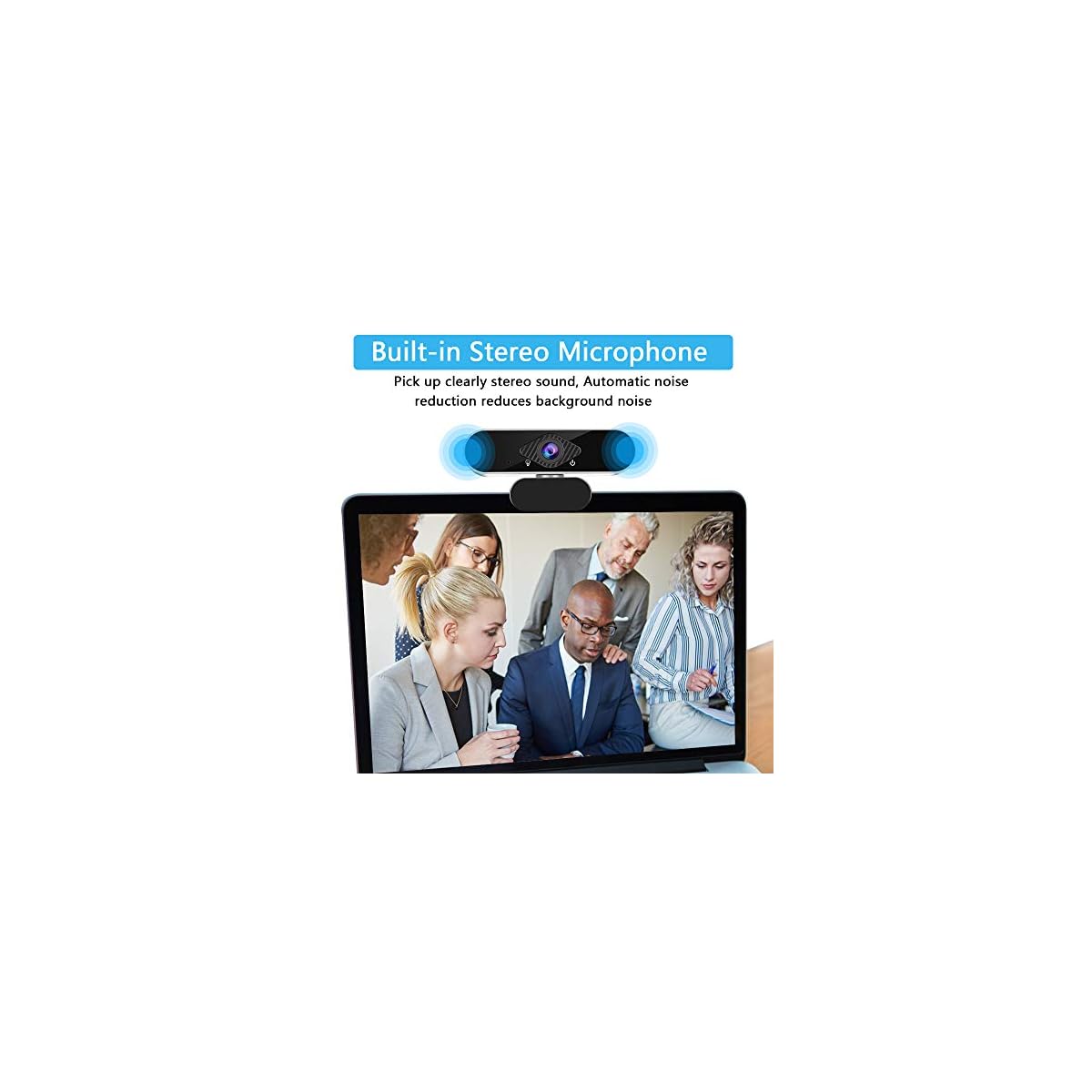 ♥[Built-in two noise reduction microphones]: The webcam with automatic noise-cancelling function has built-in digital stereo MIC to make the sound more pure and clear, and it can pick up the sound even at a distance of 10 feet to be sure that everyone can hear the real Your voice is very suitable for meetings, video calls, real-time streaming, social games, and it can give you the best video experience even in noisy environments.