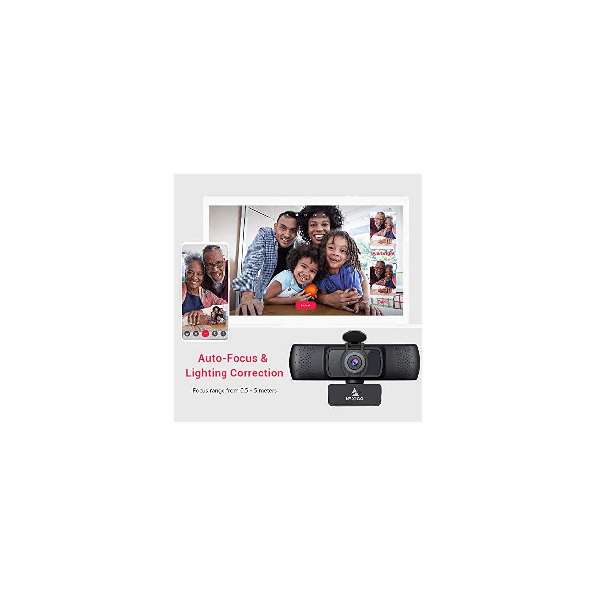 【Webcam with Auto Center of attention】 The NexiGo webcam will routinely in finding your face and routinely right kind for white balance and color.