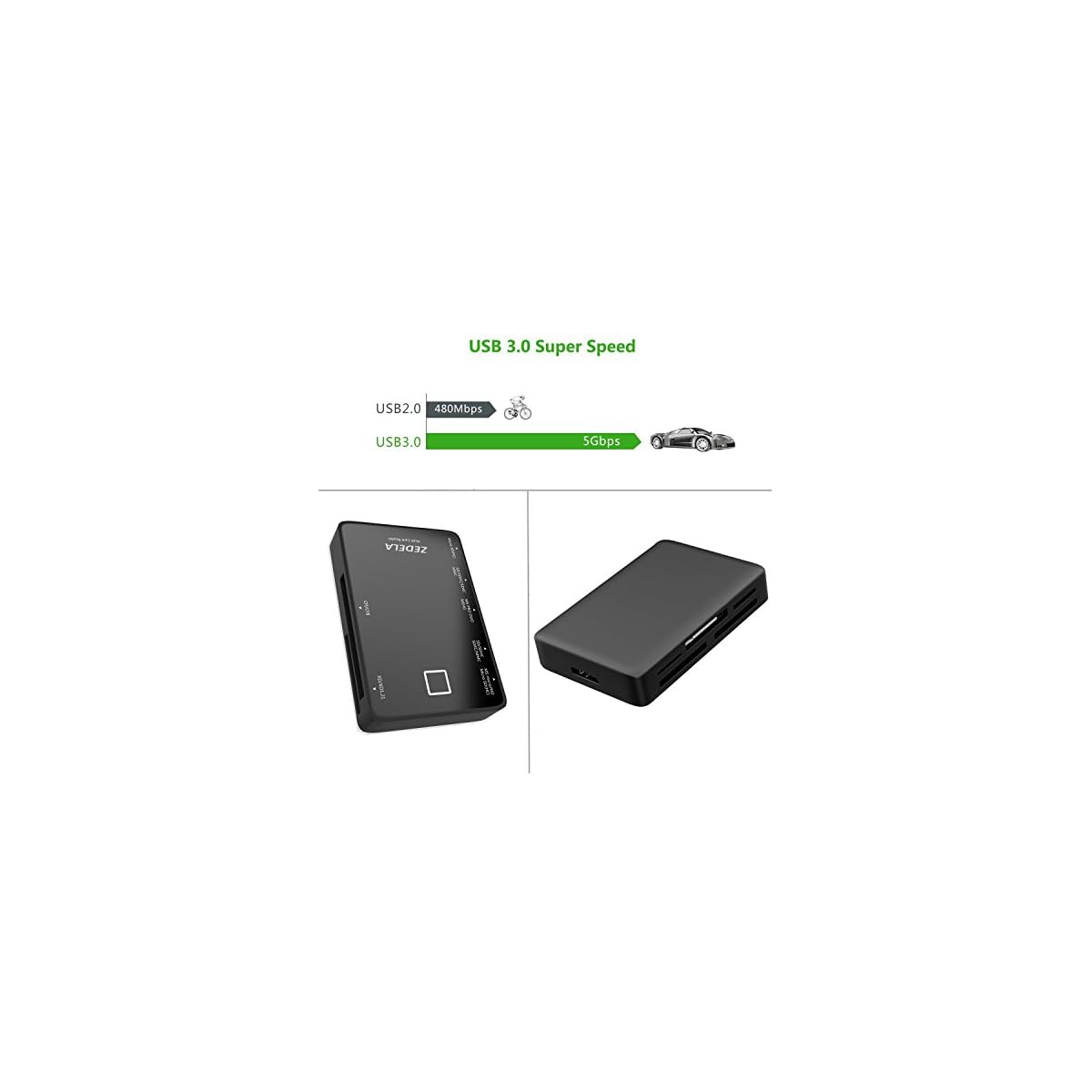 ZEDELA SD Card Reader USB 3.0 Card Hub Adapter can read many cards quickly,such as CF, CFI, TF, SDXC, SDHC, SD, XD, M2, MMC, Micro SDXC, Micro SD, Micro SDHC, MS, UHS-I and many other memory cards.