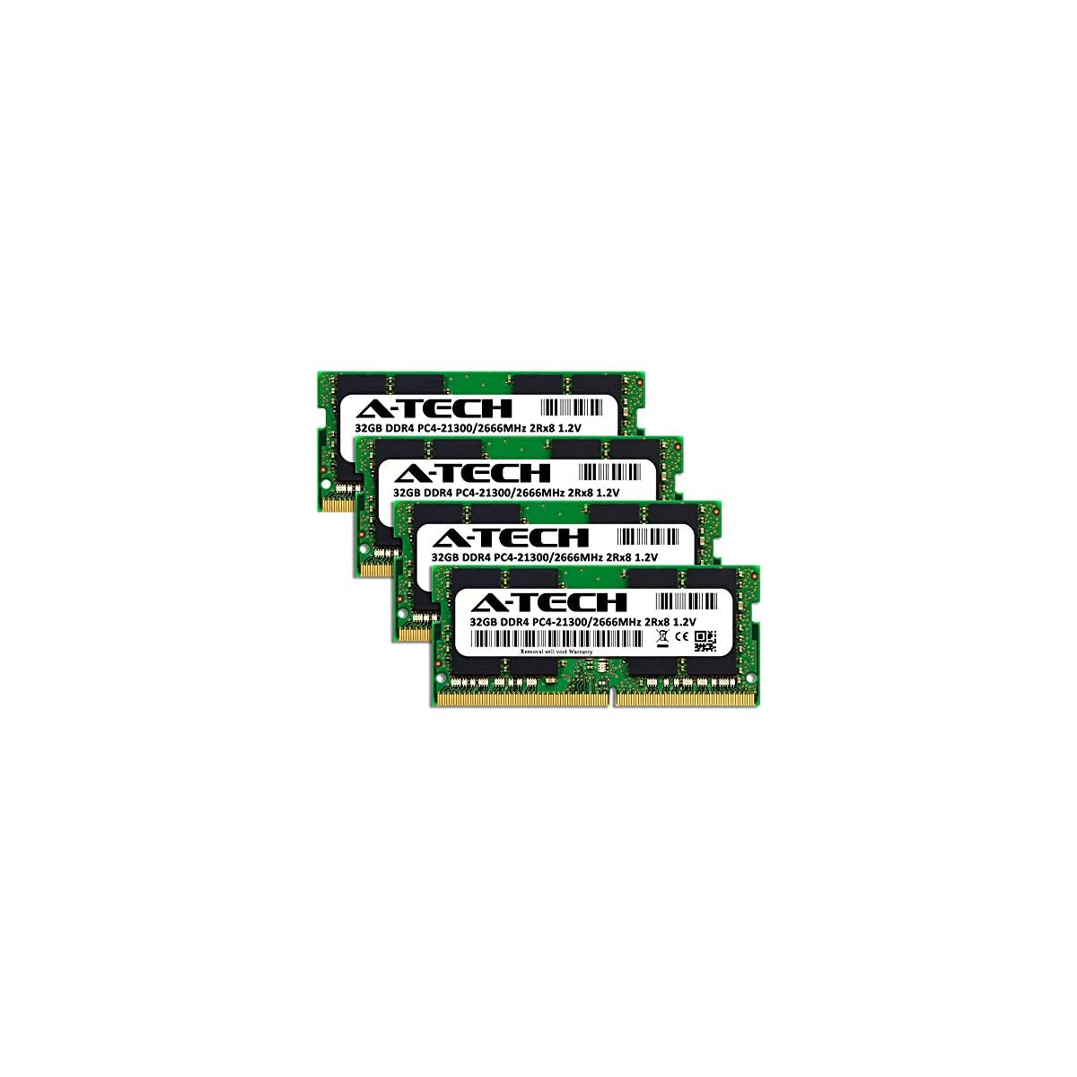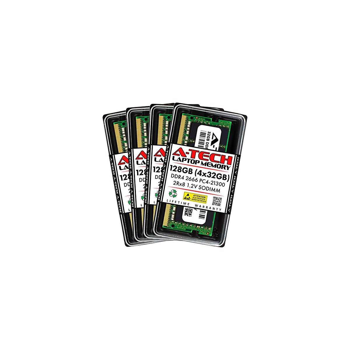 128GB Kit ( 4x 32GB Modules ) | DDR4 2666 / 2667 MHz ( PC4-21300 / PC4-2666V ) | DDR4 SO-DIMM ( 260-Pin ) | Non-ECC Unbuffered | 2Rx8 – Dual Rank x8 | 1.2V – DDR4 Standard Voltage