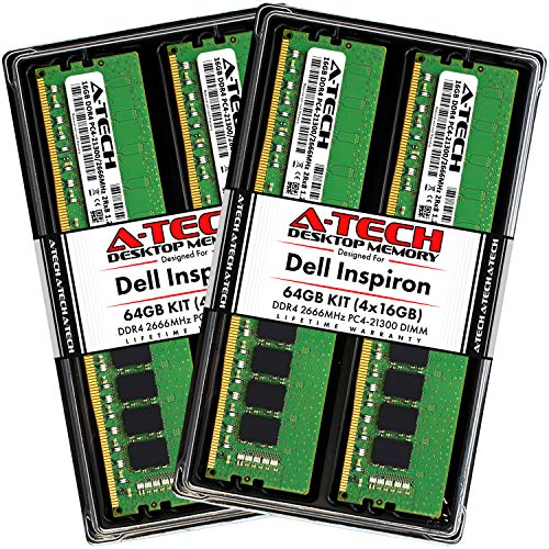 A-Tech 64GB (4x16GB) RAM for Dell Inspiron 5680 | DDR4 2666MHz DIMM PC4-21300 288-Pin Non-ECC UDIMM Desktop Max Memory…