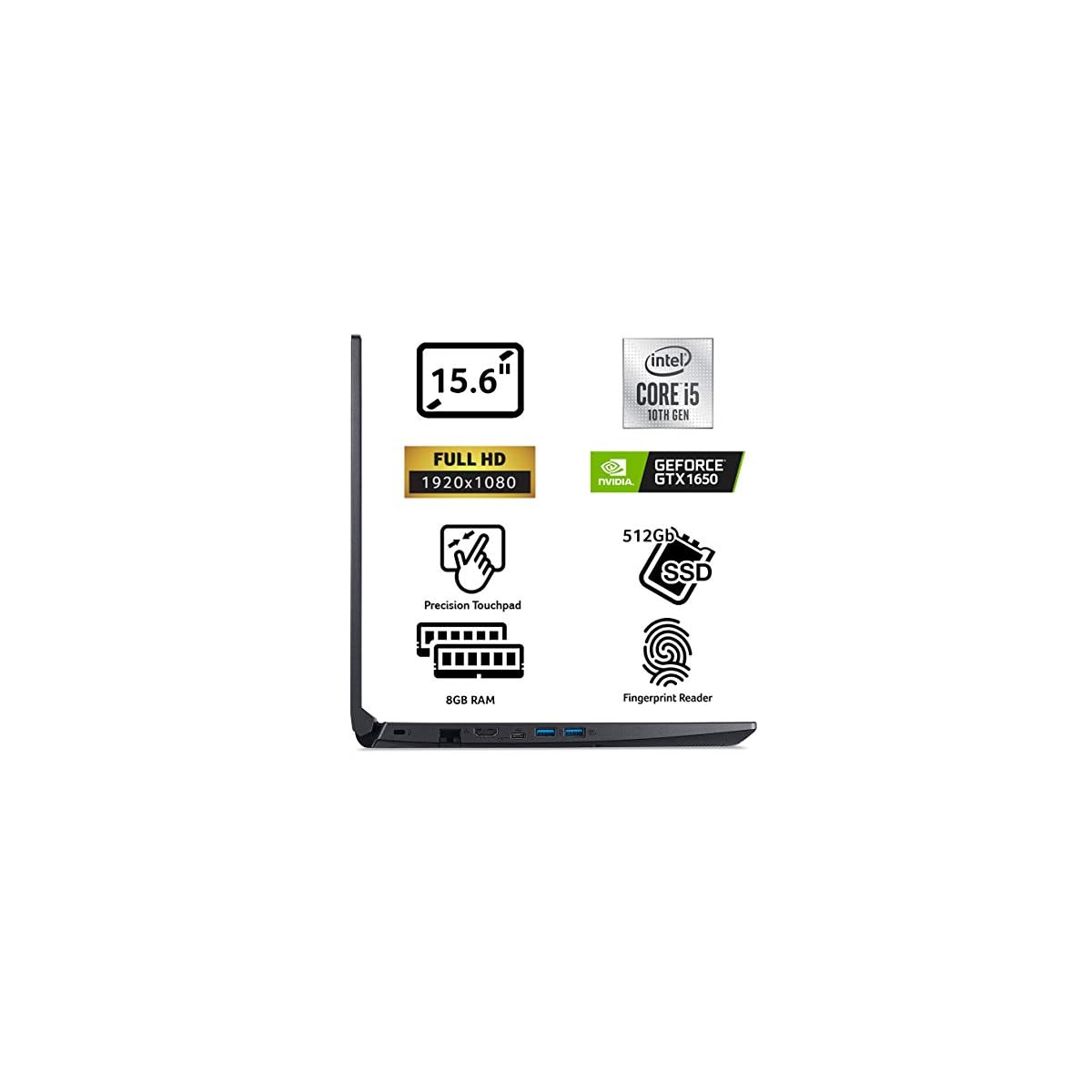 The Aspire 7 packs a lot of power into the chassis. The latest NVIDIA GTX 1650 graphics card supercharges your laptop for work and play, and a 9th Gen Intel Core CPU keeps everything running at its optimum speed. With a 512GB M.2 PCIe SSD and 8GB DDR4 RAM you have plenty of power and storage. The understated design of this laptop hides a powerful processor and graphics which will help users get the most of the 15.6” screen with large screen-to-body ratio. As you’d expect from a laptop of this calibre it also includes fast Wi-Fi and plenty of storage and memory. With its understated dark design and backlit keyboard it expresses a professional styling that won’t look out of place wherever it’s taken and is ideal for working in dimly lit environments. Watch more on-less. With the two narrow bezels and an impressive 81.61% screen-to-body ratio, you get to see more of the 15.6” 16:9 FHD IPS screen. The addition of Acer Colour Intelligence and ExaColor provides enhanced colour contrast. Users get easy updates to the latest information with a full range of connectivity options. Dual band Wi-Fi 6 (802.11ax) improves the average network throughput and reduces latency by up to 75% compared to Wi-Fi 5 (802.11ac). Through the use of USB-C users get superfast data transfer over SuperSpeed USB 5Gbps (USB 3.2 Gen 1). It also includes a total of four USBs: one USB 2.0 port and an HDMI port and two SuperSpeed USB 5Gbps Type A ports one of which can be used for offline charging.