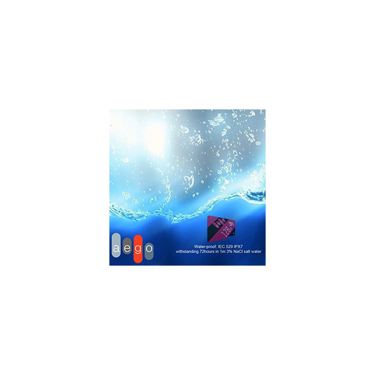 AEGO microSDXC card is backed by 4-proof protection which are waterproof, extreme temperatures, airport X-ray machines and magnetic fields equivalent to an MRI scanner
