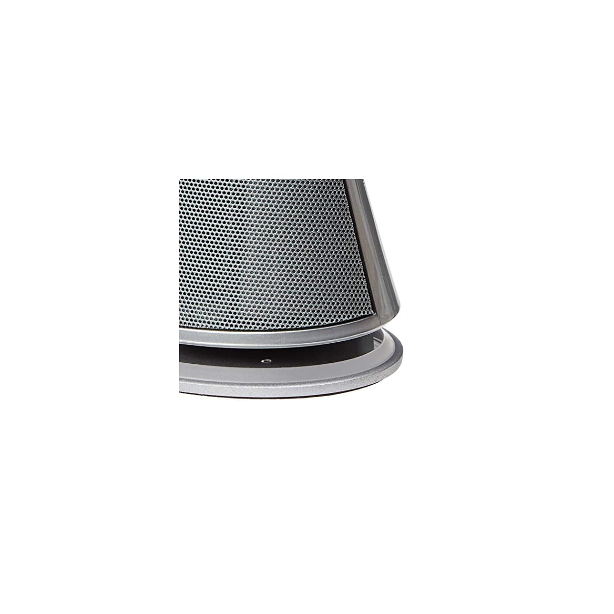 Brushed silver metal finish and blue LED accent lights for sleek, modern style; padded base for scratch-free placement and stability