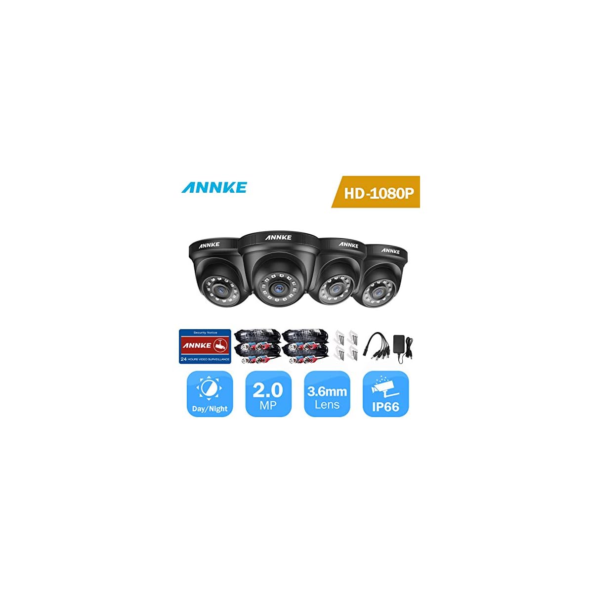ANNKE 4-Pack Home Security Camera Kits, HD TVI Add-on 1080p CCTV Cameras for Surveillance Camera System, 100 ft IR Night…