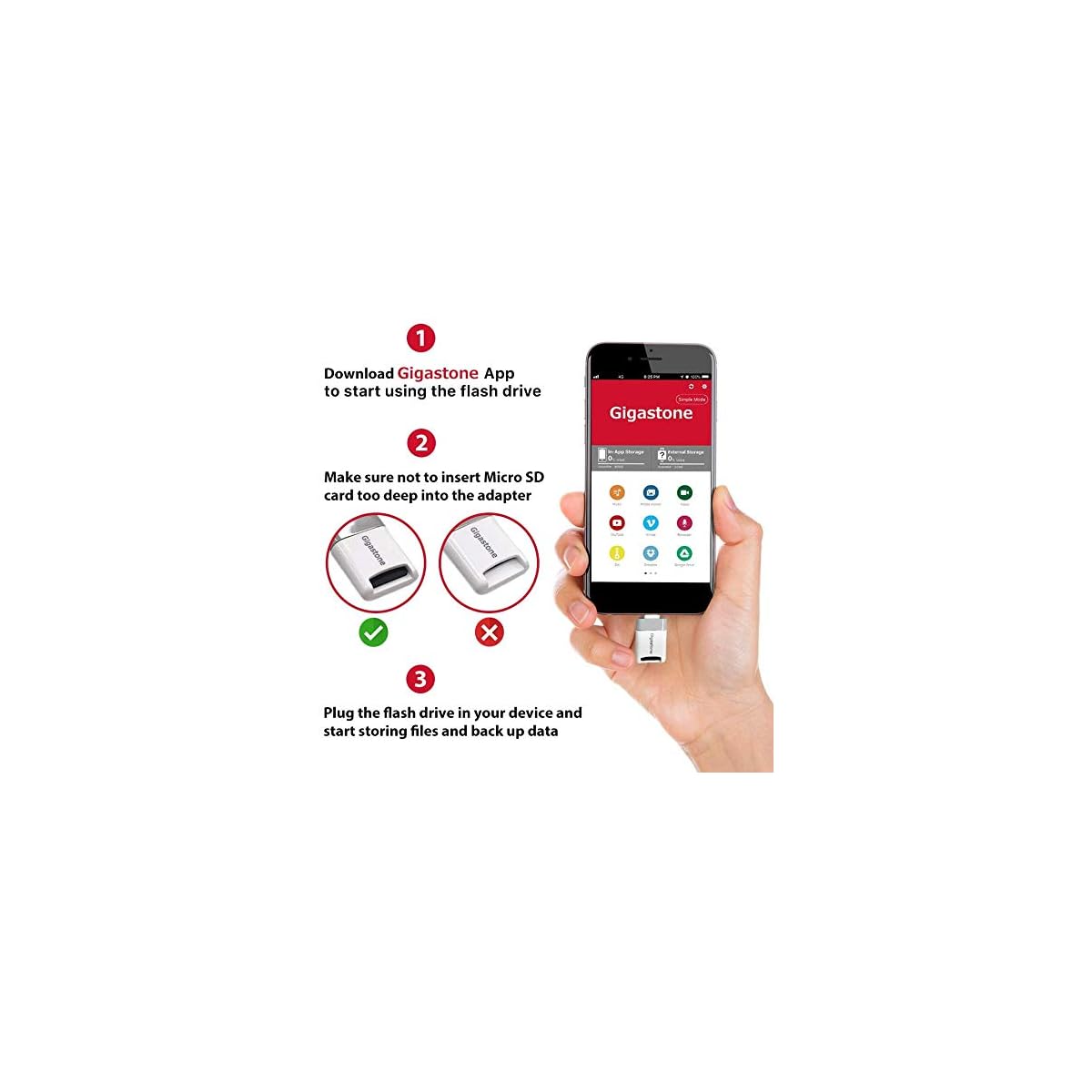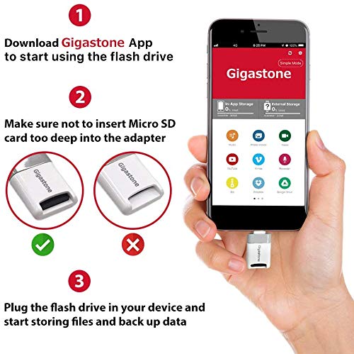 HomeData StorageExternal Data StorageMemory CardsMicro SD Cards Gigastone [Apple MFI Certified] iPhone Flash Drive, MicroSD Card Reader, Lightning for iPhone and iPad, App for iOS, 4K…