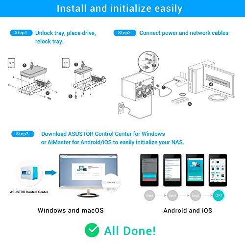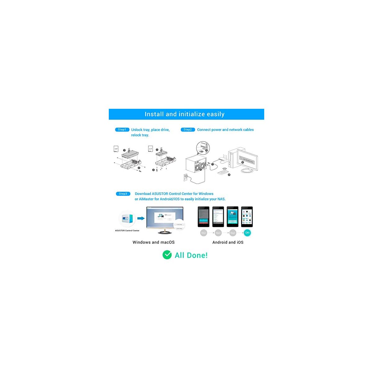 Asustor Lockerstor 8 AS6508T 8 Bay NAS Enclosure – Network Attached Storage, Quad Core 2.1GHz CPU, 8GB RAM DDR4, M.2…