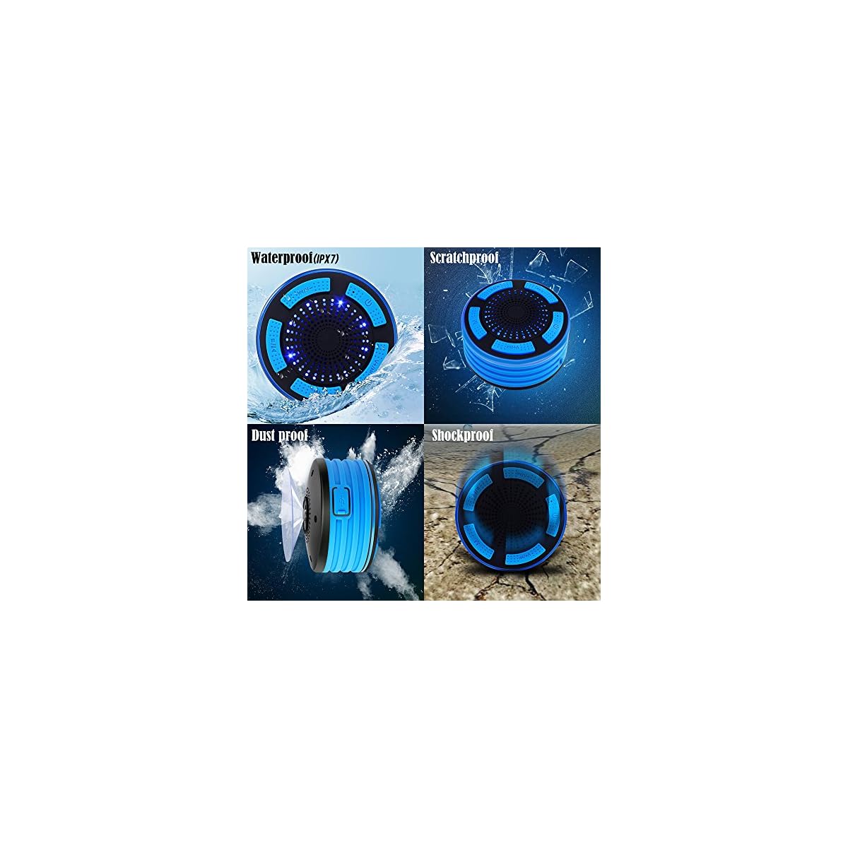 IPX7 FULLY WATERPROOF: IPX7 rating design makes this waterproof bluetooth speaker it can be submersed in 3 feet of water, up to 30 minutes, as a waterproof shower speaker, tub speaker, pool speaker, shower radio, floating speaker etc, perfect for all water environments.(Remember to dry it soon for longer lifespan)