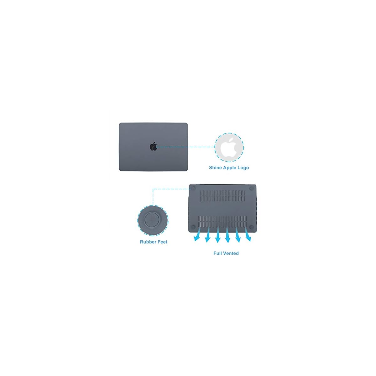 Cut out design, the Apple logo shines through the shell. The matte surface offers you a rich touch and shows your temperament. Slim and lightweight will not add extra burden to you, it is easy to carry in your bag