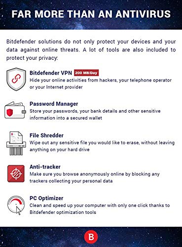 SAFE ONLINE BANKING: A unique, dedicated browser secures your online transactions; Our total Security product also includes 200MB per day of Bitdefender VPN
