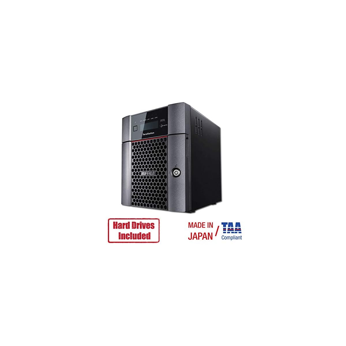 Buffalo’s Testation 5410DN0802 is a four-drive partially populated desktop high performing Network Attached Storage solution with NAS-grade hard drives included It is ideal for Large business files graphics video (Auto CAD etc ) cloud integration and iSCSI virtualization target (VMware Certified) Users can easily share and safeguard data with reliability and RAID data protection while the powerful quad-core Annapurna processor provides high performance operation For professionals looking to speed up their transfer rates this device comes with a native 10GbE port and brings you faster than ever experience All units pass severe burn-in testing with NAS-grade hard drives included ensuring comparability and reliability