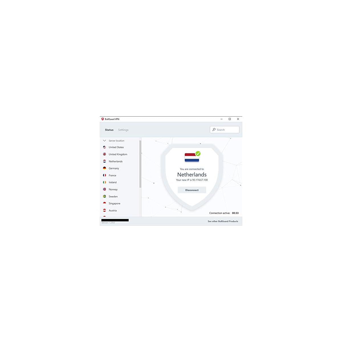 Simple and easy to use: Simply click on Quick Connect for one click access to the nearest BullGuard VPN server which connects you based on a number of factors including your current location. Or you’ll choose the country of your choice to connect to a server in that country. Enable Auto-connect VPN for open Wi-Fi networks, and BullGuard VPN will identify open Wi-Fi connections and automatically starts the VPN to ensure you are secure.