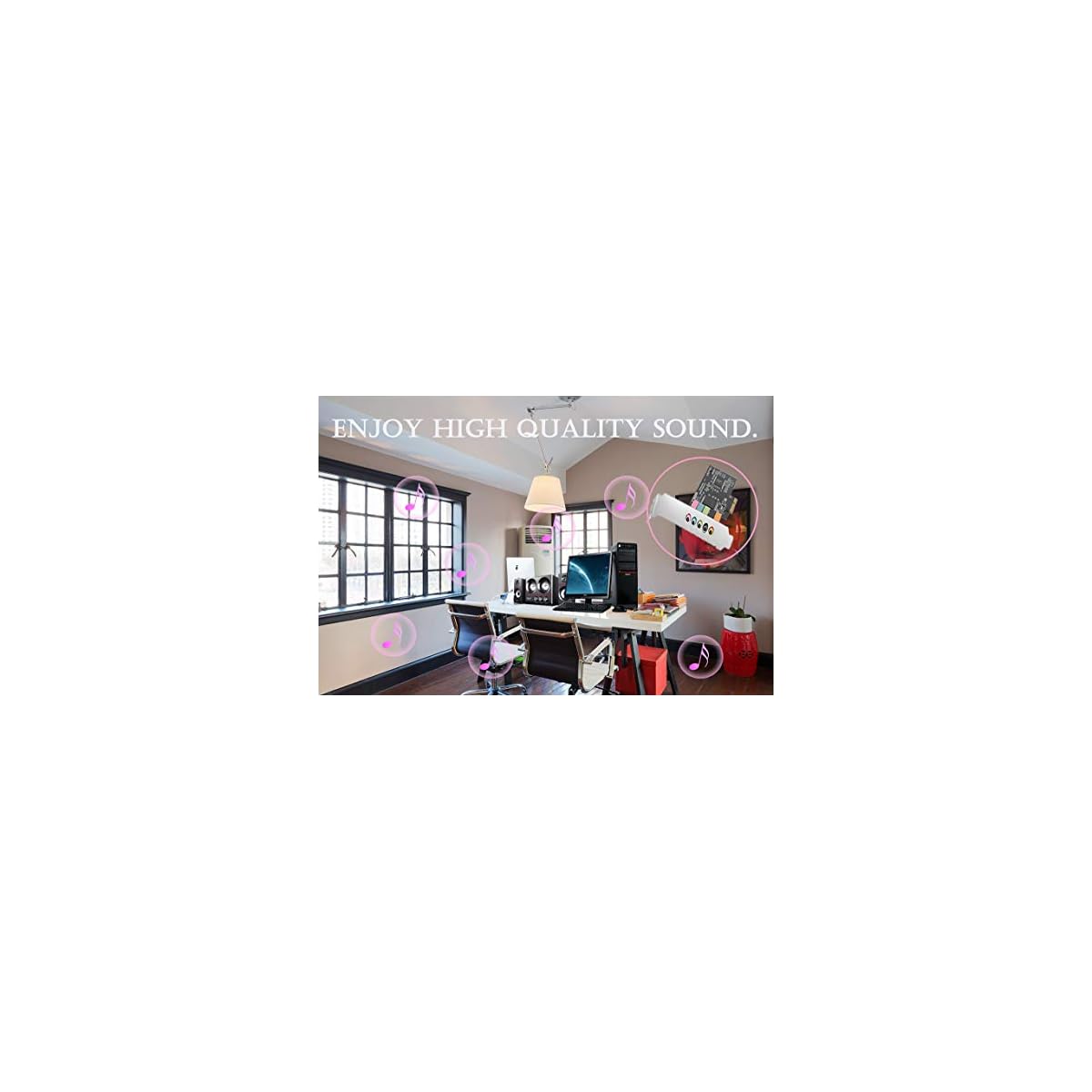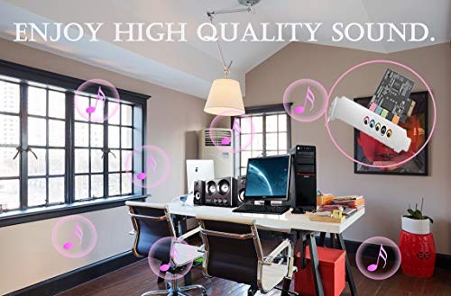 PCI-E SOUND CARD – If your computer sound card is malfunctioning,PCI-e 5.1 sound card provides a good solution.Easily convert the PC into a cinematic entertainment system by providing a 5.1 3D stereo surrounding sound.(NOTE: If you wish to download online drive cause do not have a CD driver.Please click this this link:https://www.cmedia.com.tw/Enhance/download_center)