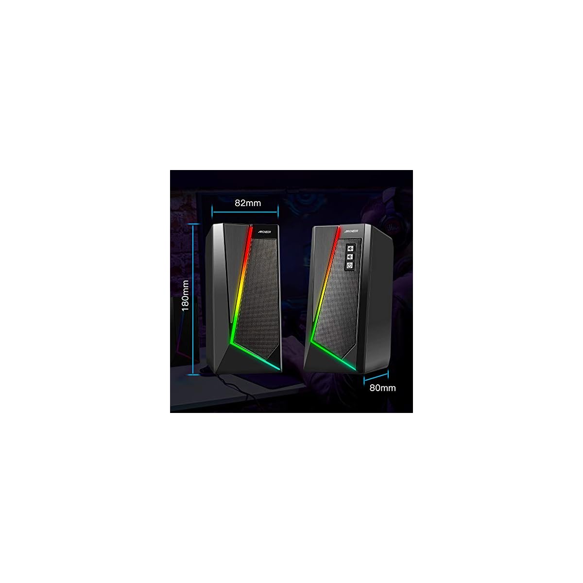 【Brilliant RGB Gaming Speaker】Its dynamic LED light show effect allows you to set the perfect mood for your music,It’s so attractive in the dark. Enhance the atmosphere of watching movies and playing games.