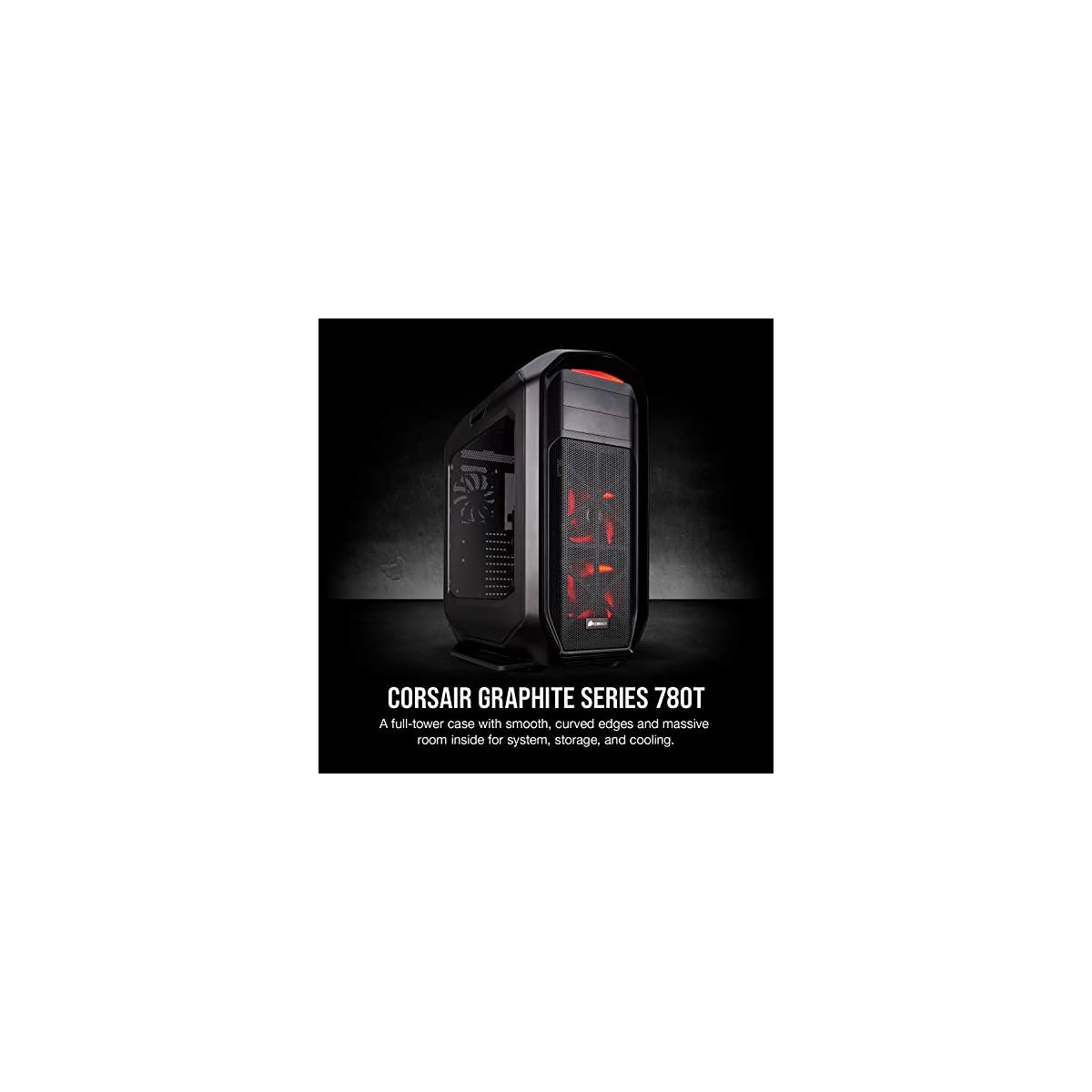 Corsair CC-9011063-WW 780T Graphite Series Windowed Full Tower ATX Gaming Case with LED Fan – Black/Red