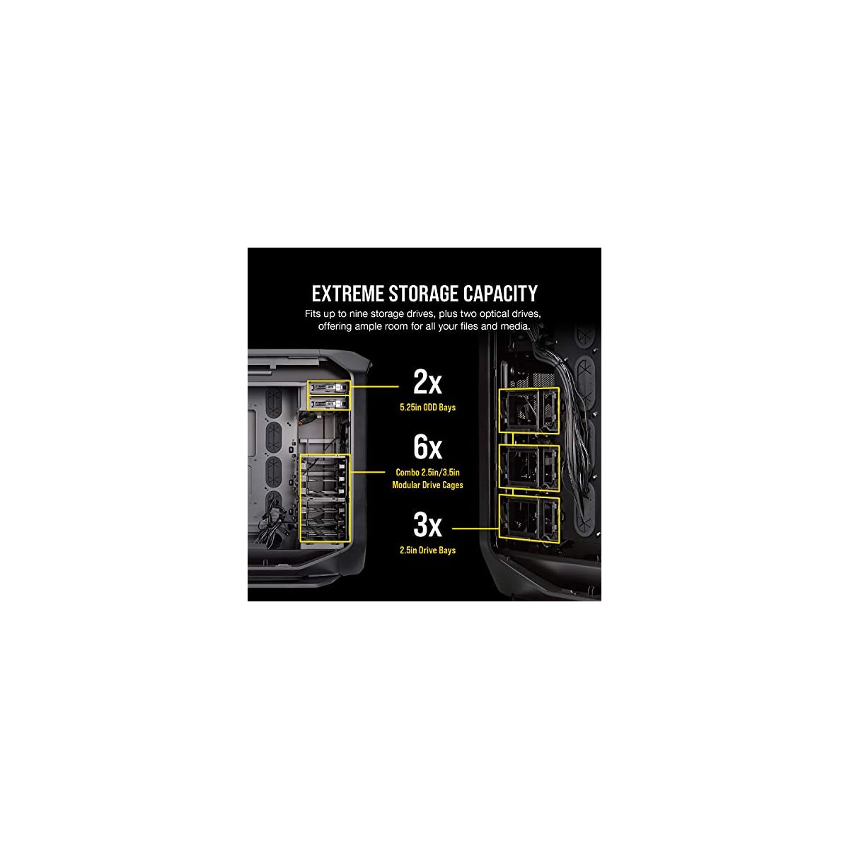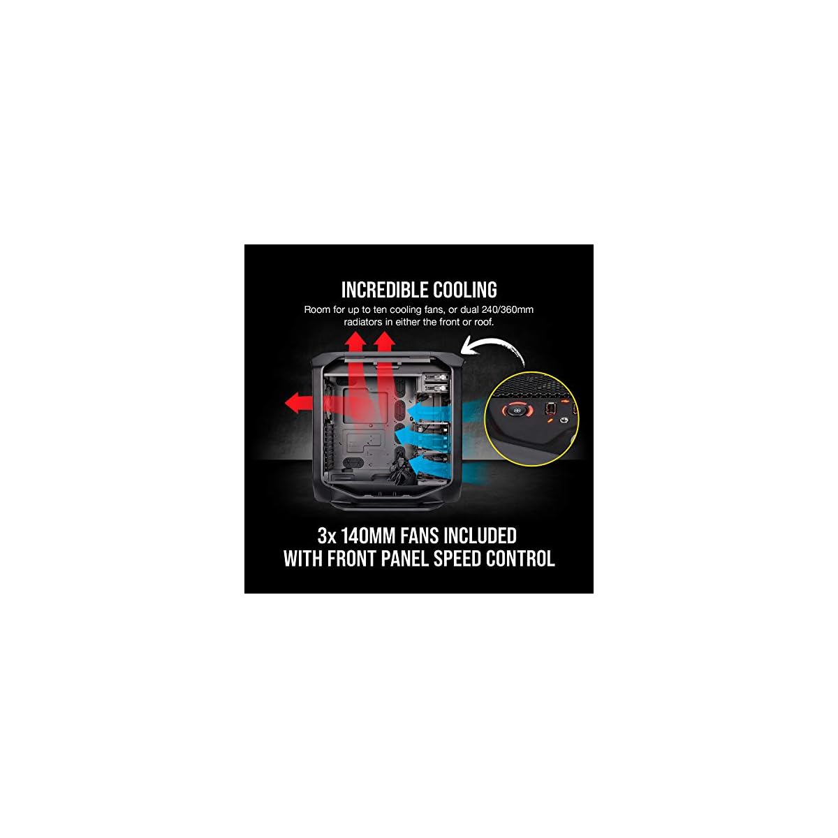 Supports dual 360 mm radiators. Compatible corsair liquid coolers: H55, H60, H75, H80i, H90, H100i, H105, H110. Maximum GPU length: 35.5cm, maximum PSU length: 26cm, maximum CPU cooler height: 20cm