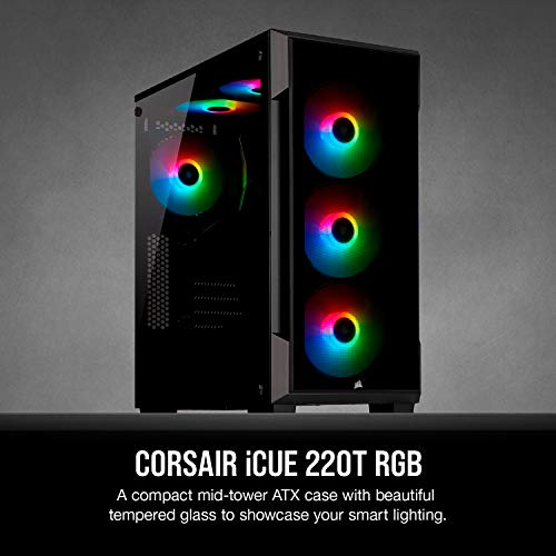 The Corsair iCUE 220T RGB is a mid-tower ATX smart case with a tempered glass front and side cover to showcase your RGB components. Spectacular lighting effects can also be achieved with the three included SP120 RGB PRO fans. They’re each and every equipped with eight in my opinion controllable LEDs and can also be controlled by way of the CORSAIR iCUE software and the included Lighting Node CORE. A full-length power supply cover provides you with a tidy look, plus flexible storage options for as much as four drives. With room for as much as six fans or three radiators and removable dust filters for a clean system, the 220T RGB is a brilliant choice with smart lighting.