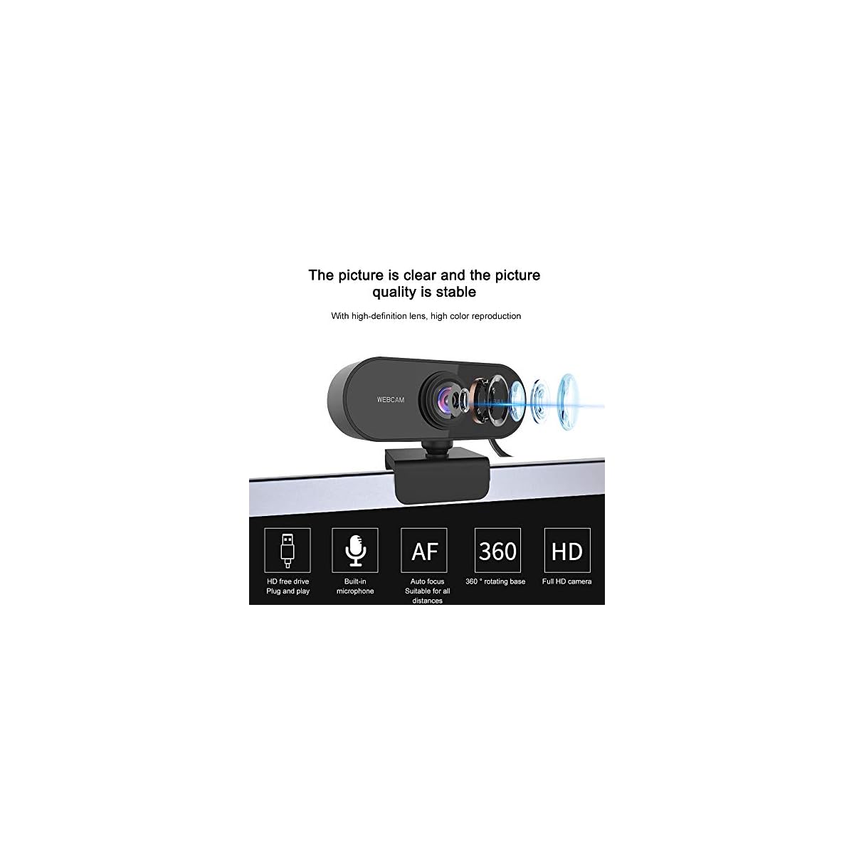 【Camera for laptop with widescreen】 The 360 ° full-motion rotation camera, up and down for the 30 ° setting, it is conceivable to adjust the angle as desired, with a non-slip base, simplifies the call and recording at any time and from every angle.