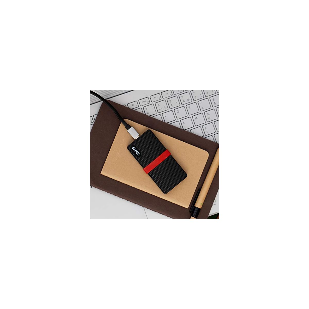 Emtec X200 Portable SSD 256 GB delivers high-speed transfer speeds up to 450 MB/s read speed and is ideal for storing high-resolution photos and videos. The X200 Portable SSD is well protected against vibrations and shocks. It is designed so compact that it fits in the palm of your hand.