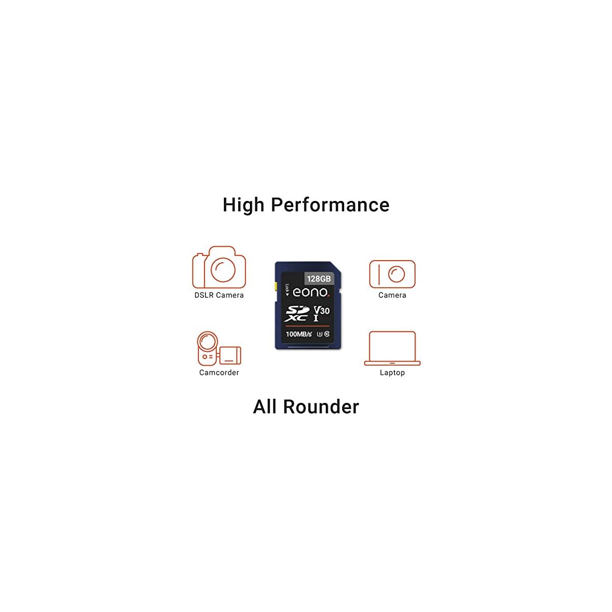HomeData StorageExternal Data StorageMemory CardsMicro SD Cards Eono by Amazon – 128 GB 4K, V30 (U3 / UHS-1) High Speed A1 Micro SDXC, up to 100 MB/s Transfer Speed