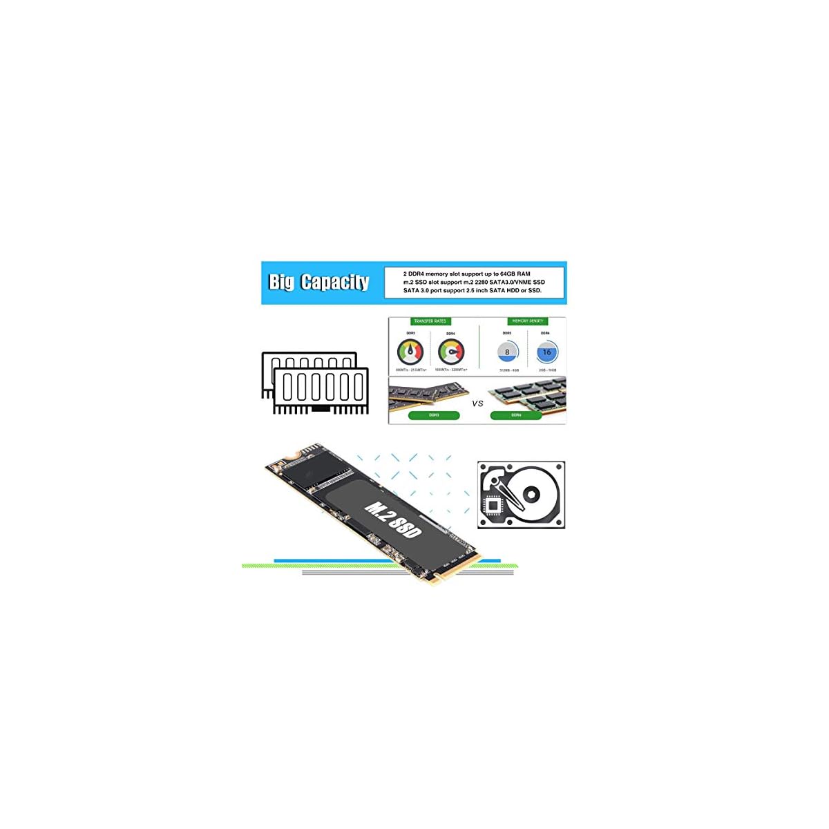 【M.2 2280 NVME SSD】This mini desktop computer built-in-fan Mini Desktop Computer PC supports dual DDR4 SO-DIMM max 64GB RAM. Dual channel more powerful performance strengthen work efficiency and give you a smooth experience. There’s no storage capacity limitation, can install M.2 NVME 22*80 SSD+2.5” SATA HDD together.. More fast performance storage. Make stronger DIY SSD storages.