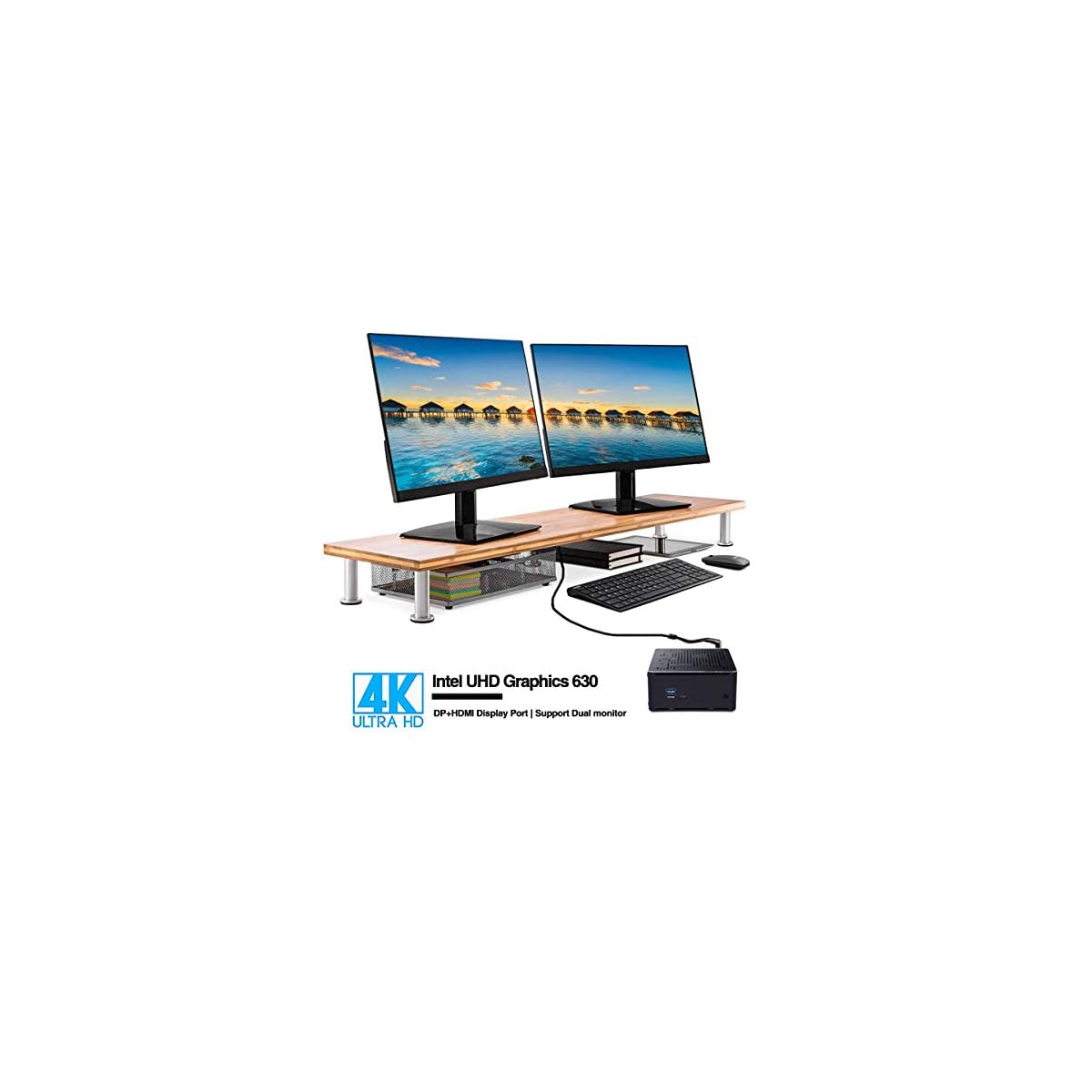 【DP/HDMI 2.0 4K Output Display】Simultaneous display on two screens through DP+HDMI 2.0 ports. It may be used as a PC or HTPC for home theater. Therefore, you’ll be able to use it in the office, in the training center, in the factory, in the internet bar or wherever a pc can be utilized. Playing 4K HD video gives you an excellent viewing experience.