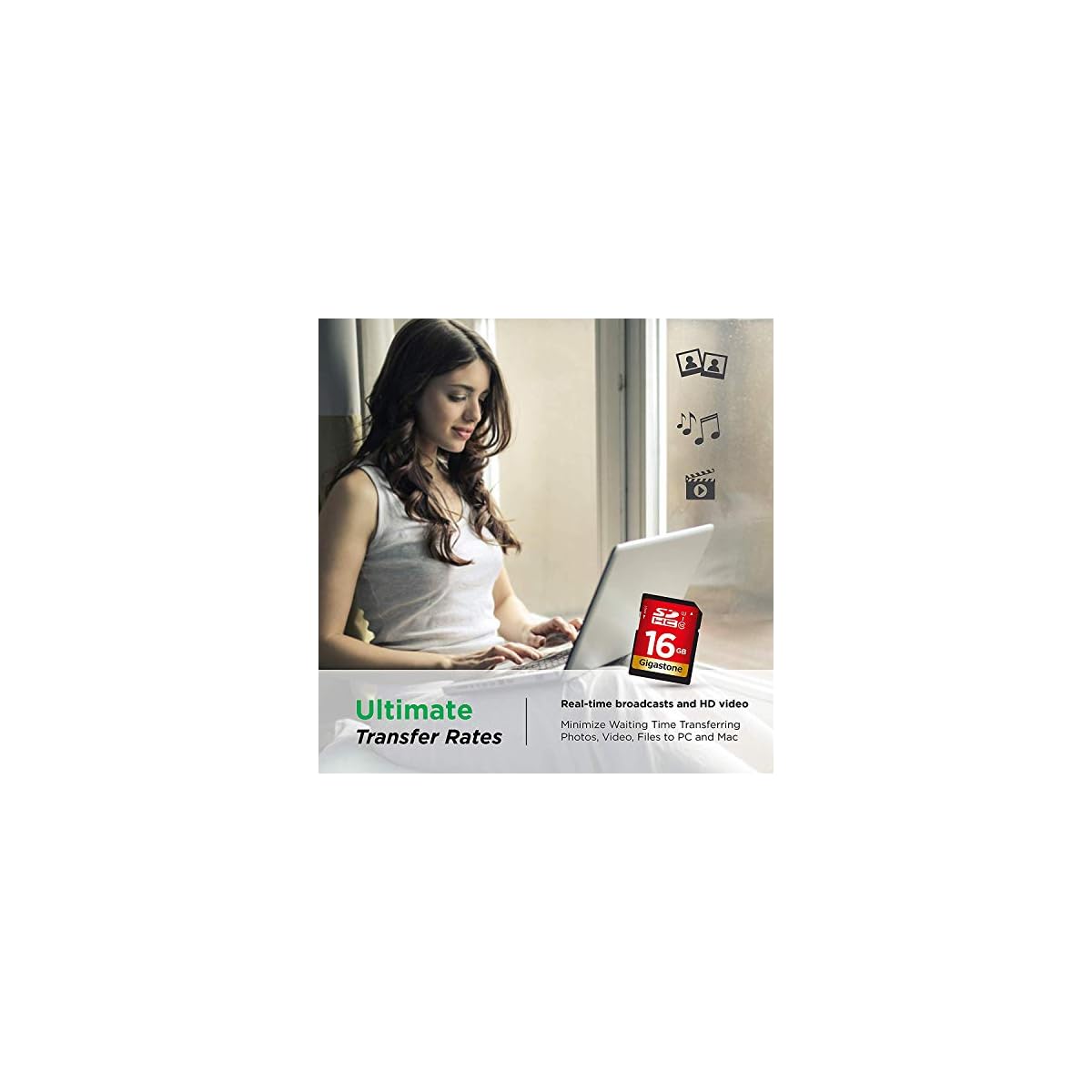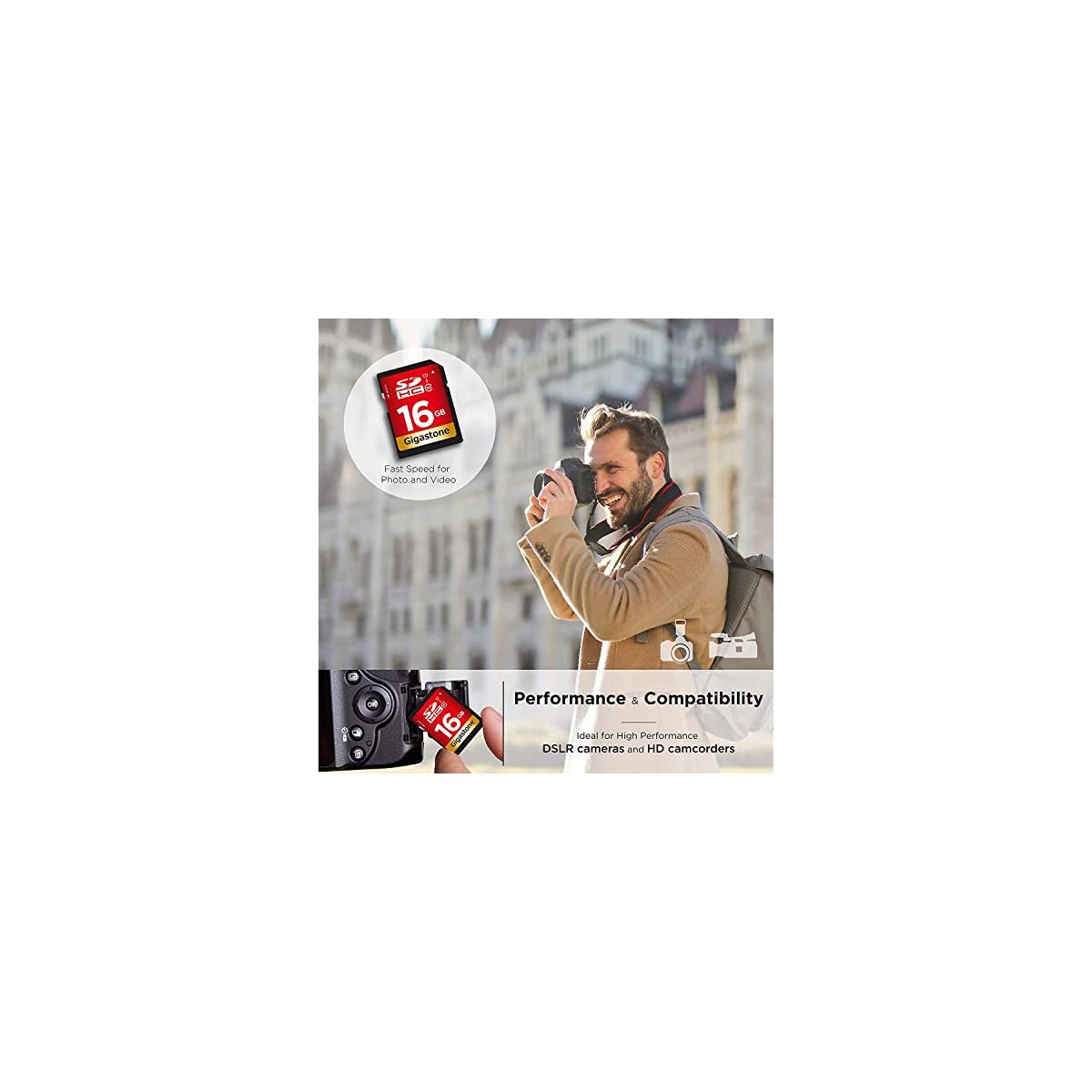 Gigastone 16GB SD Card, Speed Class 10 C10 U1, UHS-I SDHC Memory Card, Full HD video available
