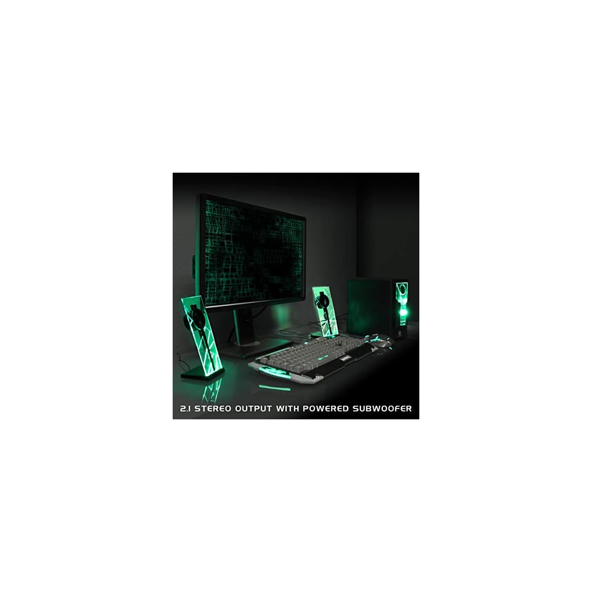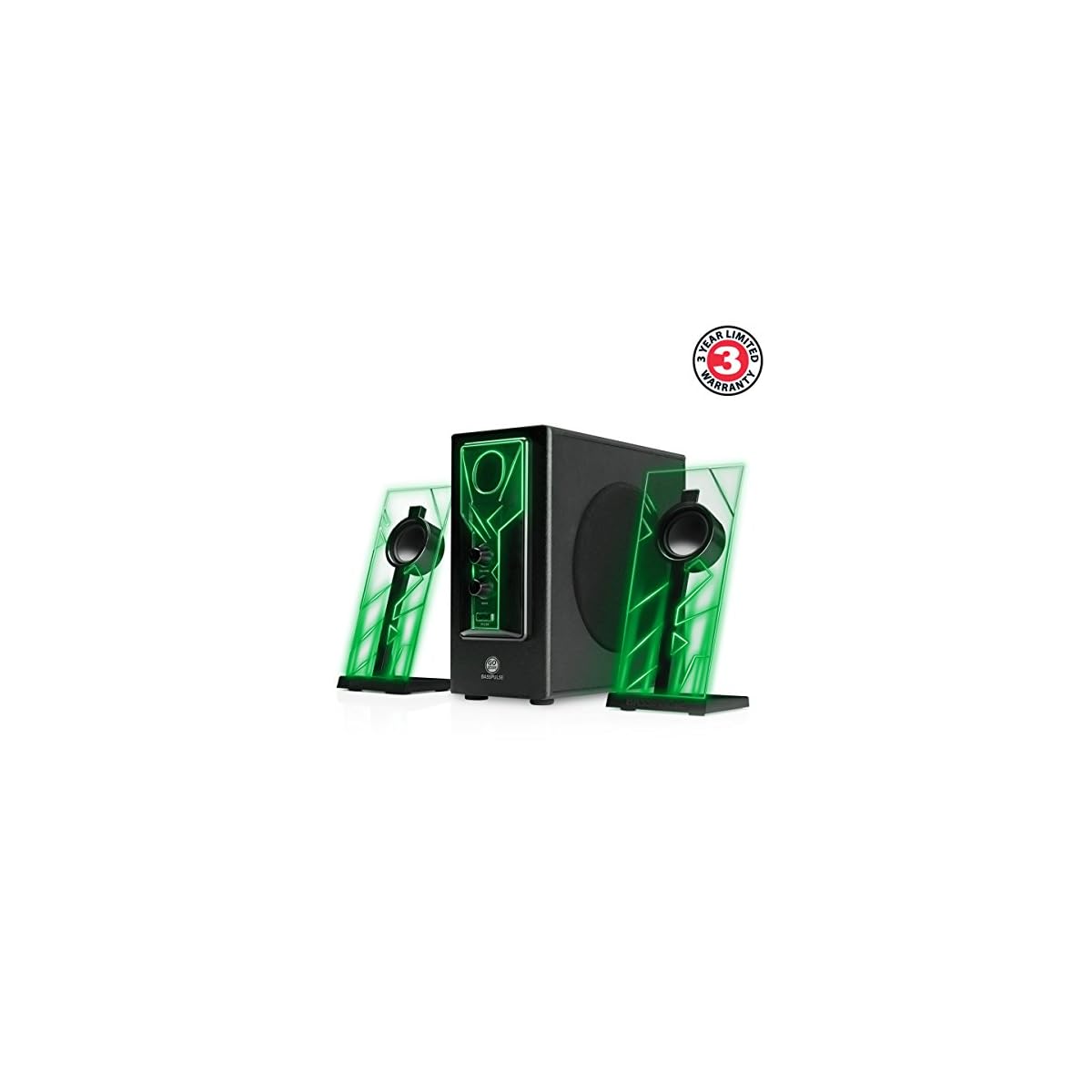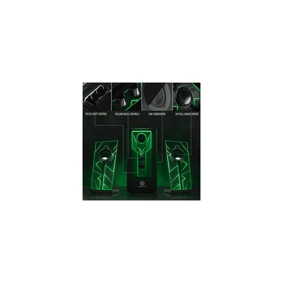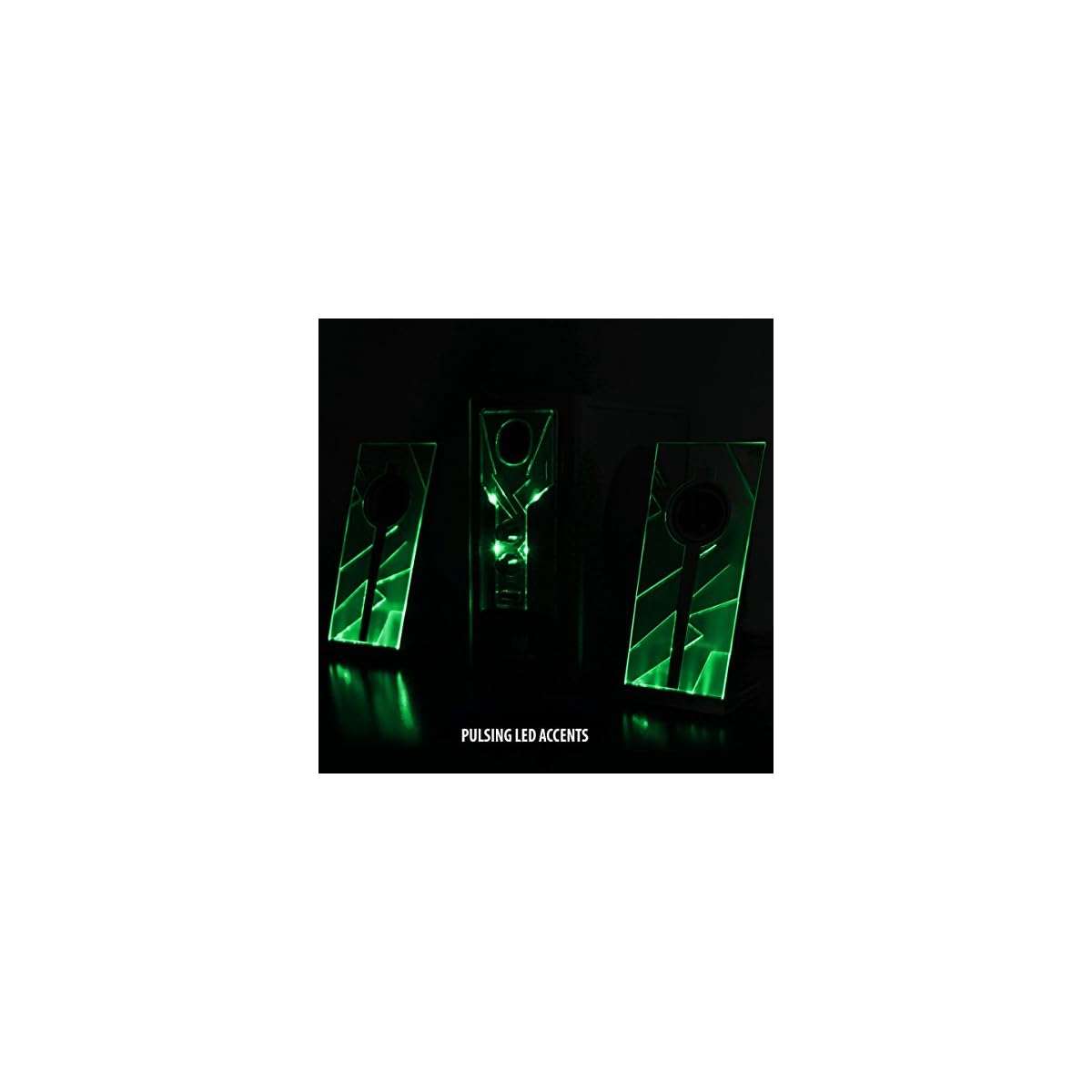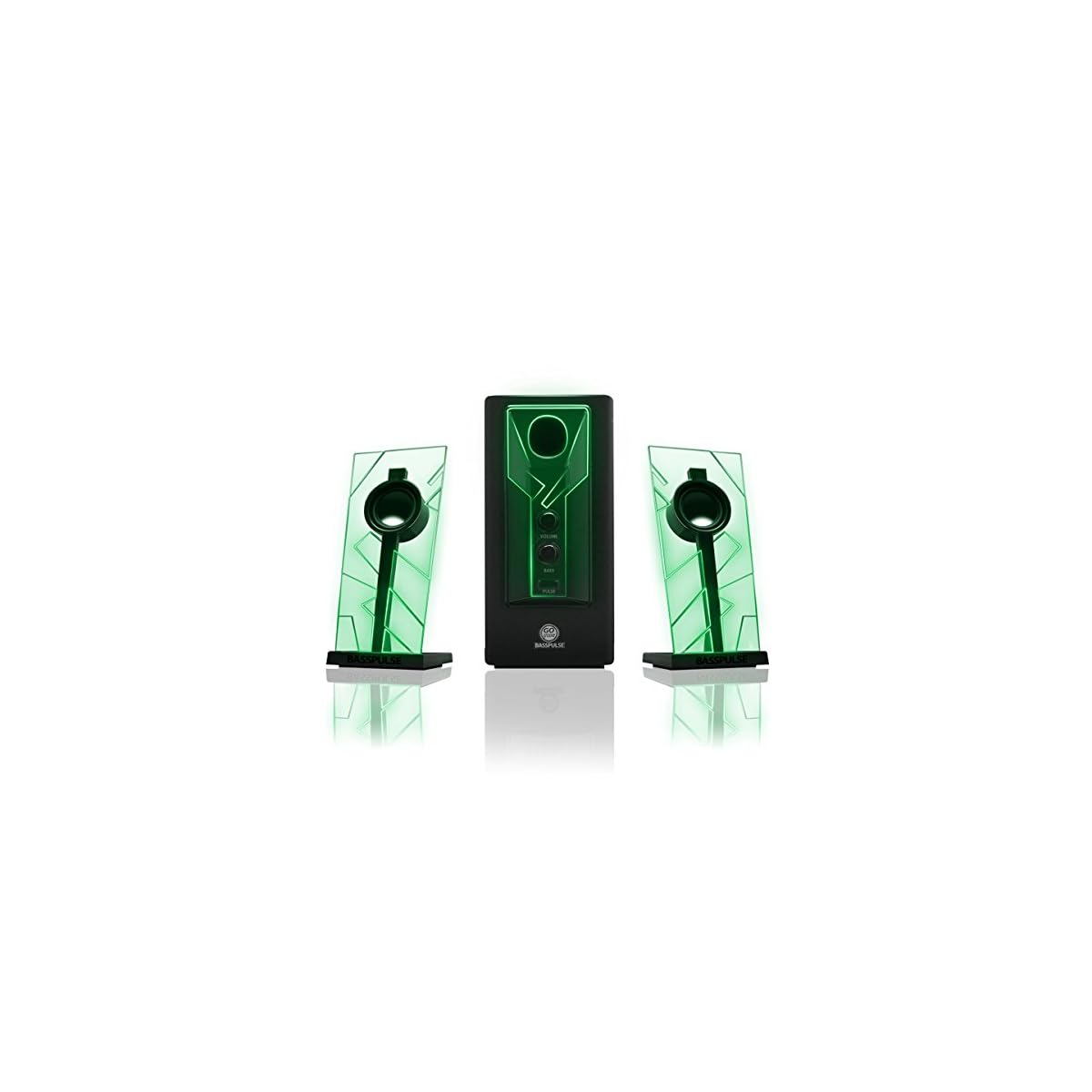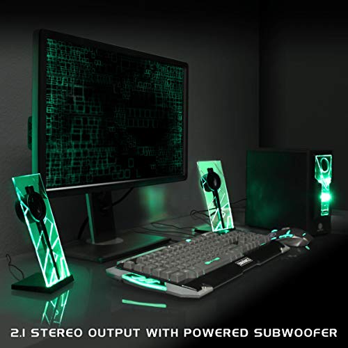 GOgroove BassPULSE 2.1 LED Satellite Stereo PC Computer Gaming Speakers with Green Glow Lights, Bass Controls and…