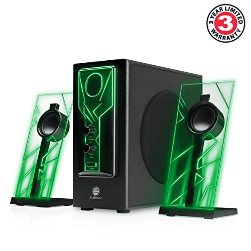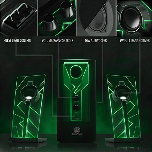 HomeComputer ComponentsComputer Speakers GOgroove BassPULSE 2.1 LED Satellite Stereo PC Computer Gaming Speakers with Green Glow Lights, Bass Controls and…