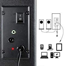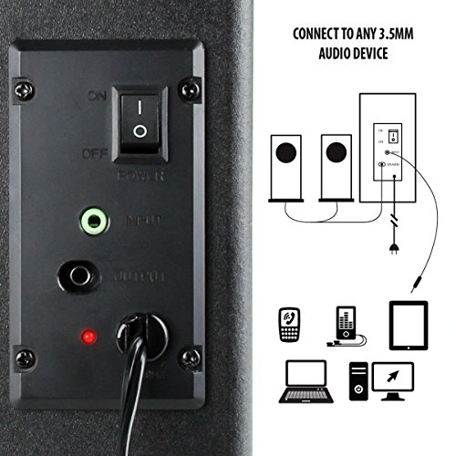 2.1 OUTPUT WITH POWERED SUBWOOFER: Satellite channel speakers and bass heavy sub stream audio from any device using a standard 3.5mm AUX input or headphone port.