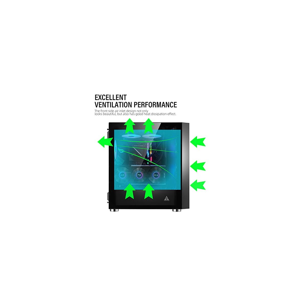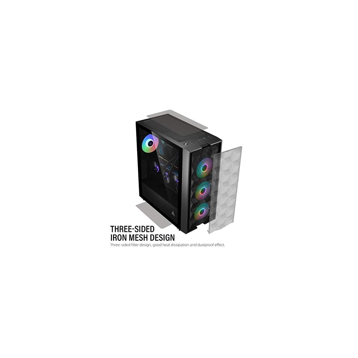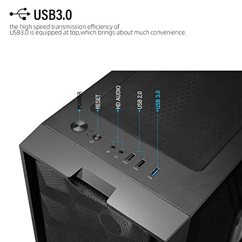 Iron Mesh Front Panel: High air flow layout ensures massive air intake, optimizes airflow inside the PC case, keeps internal devices cool.