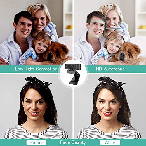 ★ HD AUTOFOCUS AND LIGHT CORRECTION – Computer Camera with HDR sensor and autofocus feature captures every details of the picture , Face beauty function that make you look more confident in the video chat; The PC webcam with Automatic low-light correction, F/N2.1 large aperture aperture, capture clear image even in a dim area.