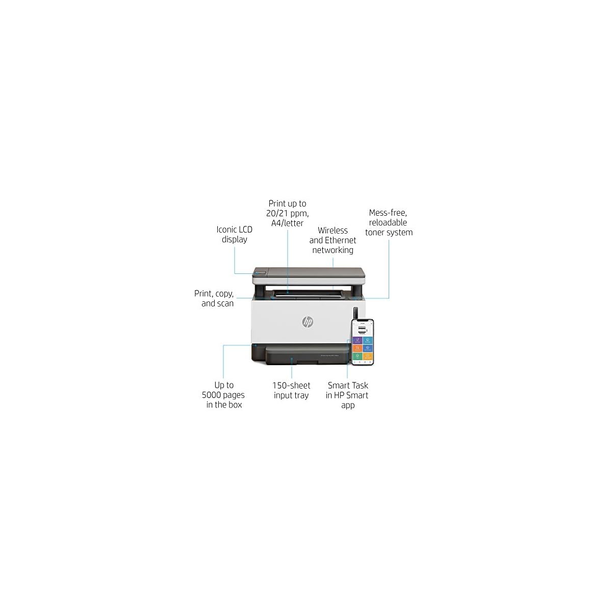 Wireless, high-capacity toner tank that scans and saves you up to 60 Percent on toner (60 Percent saving based on internal HP comparison of MSRP/(MRSP for EMEA region) and cost-per-page of in-class HP LaserJet Pro M15 and HP LaserJet Pro MFP M28 with standard-fill HP 44A/48A Black Original LaserJet Toner Cartridge, as of July 2019.) Exceptional value right out of the box – up to 60 Percent savings on toner with 5000 pages of toner included. Print, scan, and copy, and restore toner in seconds with a mess-free experience. Print and scan virtually anywhere with HP Smart app. Requires the HP Smart app download. HP Personal Laser Multifunction Printers are designed for individuals or small work teams who need affordable, reliable multifunction performance in a compact and easy-to-use desktop device.