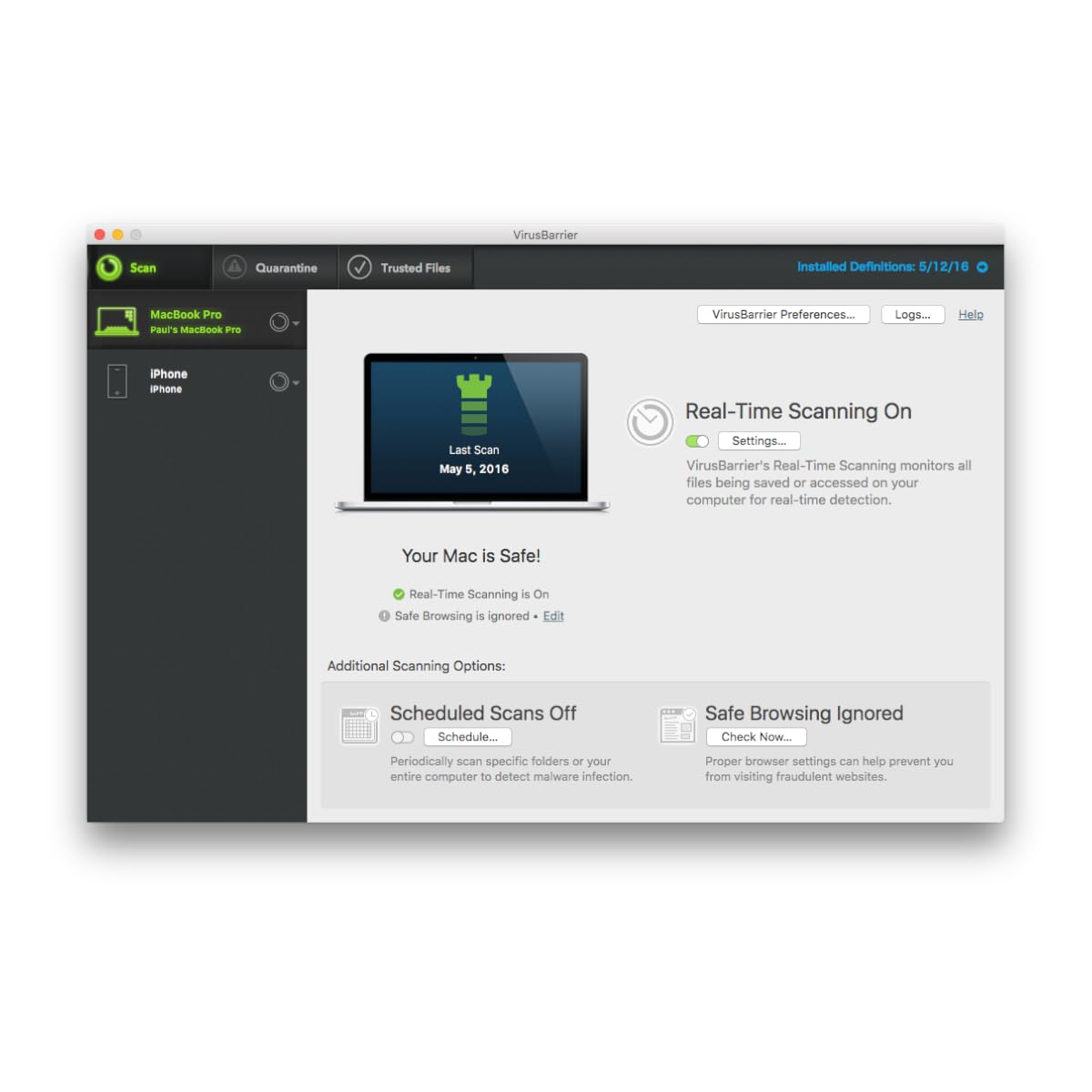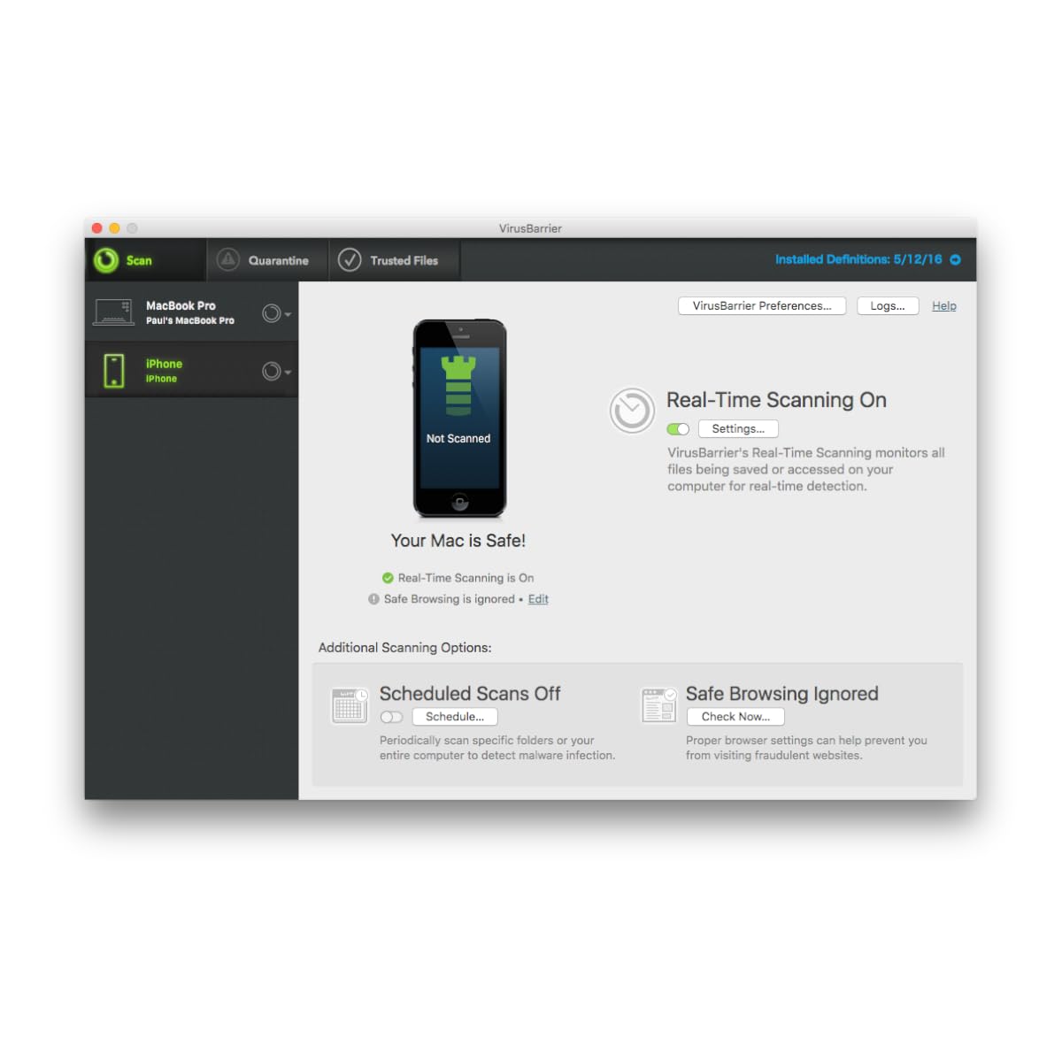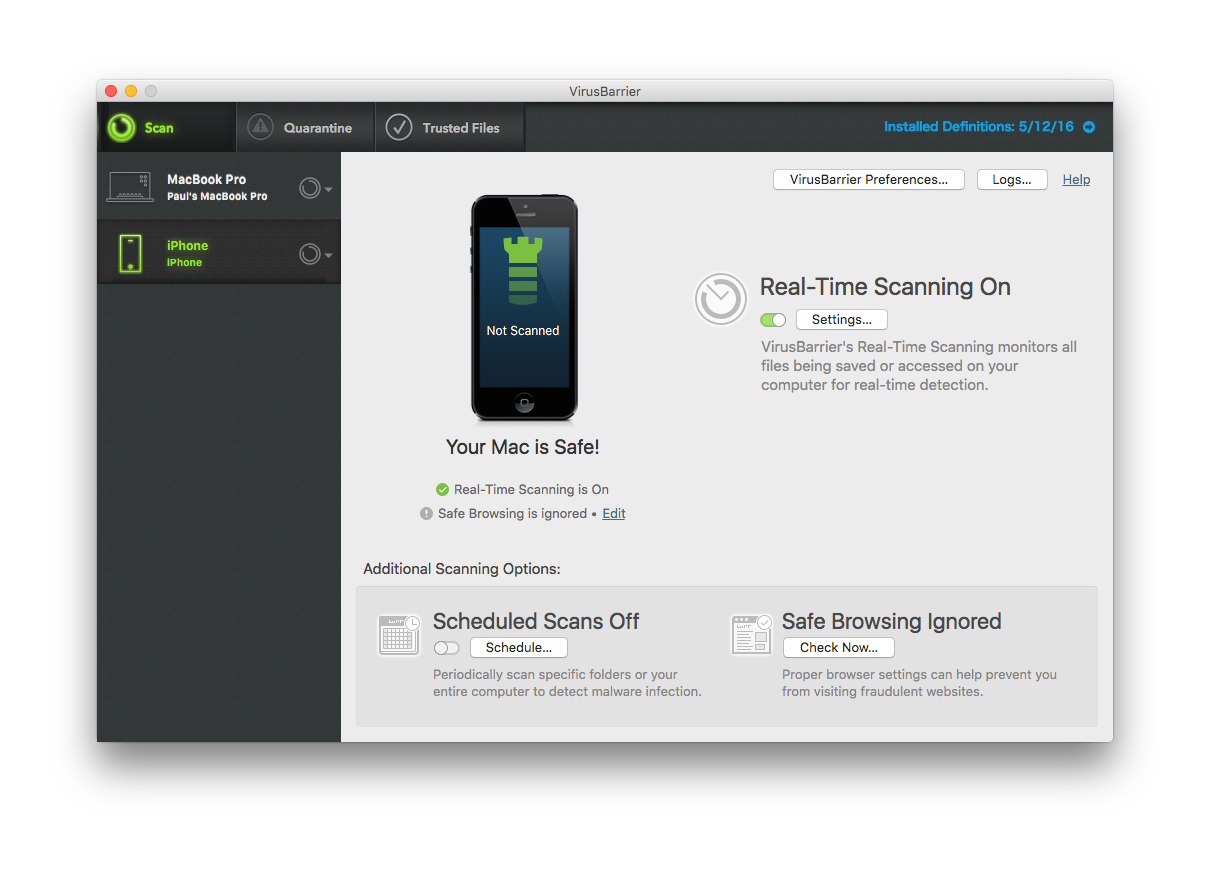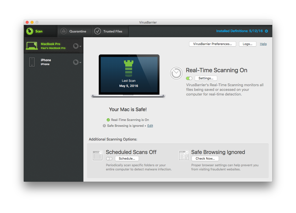 Intego VirusBarrier X9 has been completely redesigned to make sure that Mac owners of all abilities can set it up and configure it to provide immediate protection. This means less time tinkering with settings and more time on your favorite websites and apps. Your iOS devices are an open doorway to transmitting infected files and malware onto your Mac and Windows systems. Intego VirusBarrier X9 scans iOS devices whenever they’re plugged into your computer to ensure that no infected files that you received via email will pass onto your Mac or Windows machines.