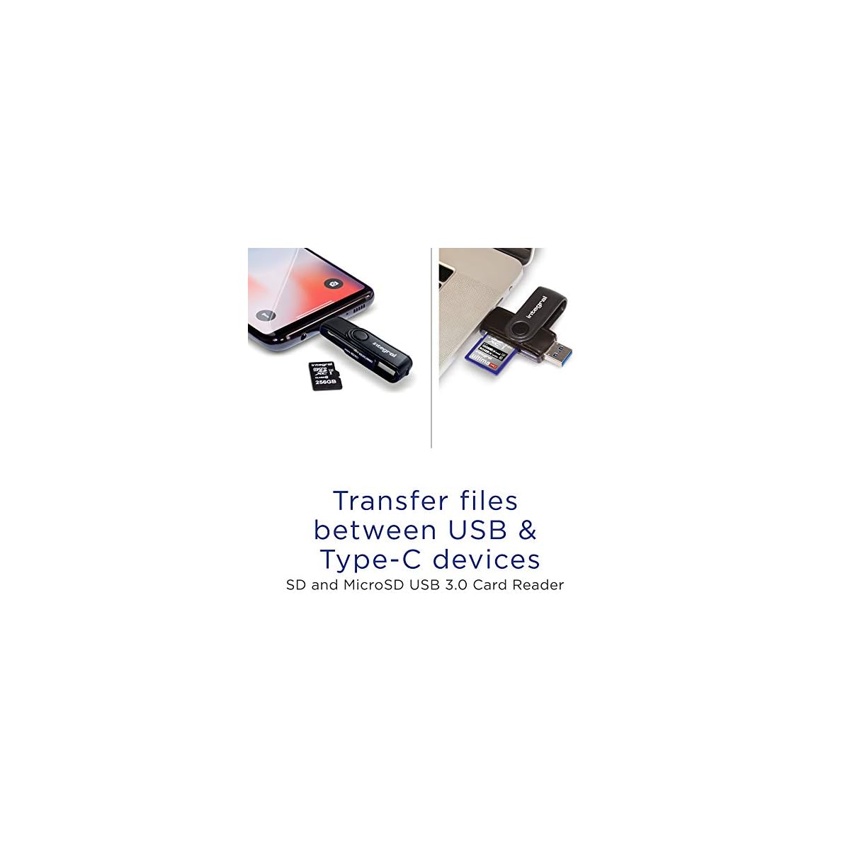 A full-sized USB (Type A) connector provides microSD and SD memory card to PC/Mac data transfer and a USB-C connector allows you to also plug the reader into compatible smartphones and tablets; so you can transfer your files between your mobile device and your memory card.