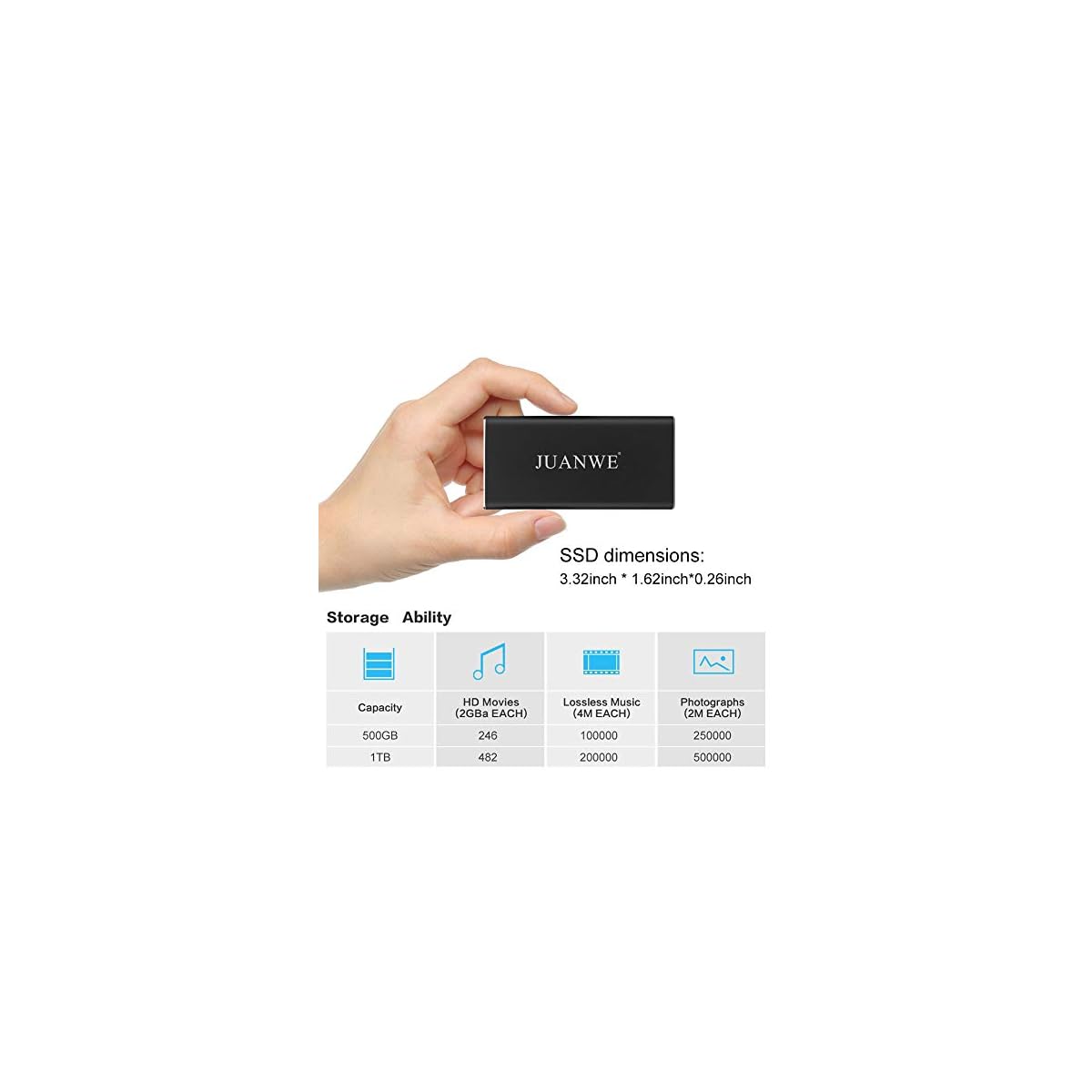 HomeData StorageInternal Data StorageInternal Hard DrivesSS Drives JUANWE 1TB Solid State External Hard Drive USB 3.0 Type-C Portable SSD High-Speed Read & Write Up to 550MB/s & 510MB/s…
