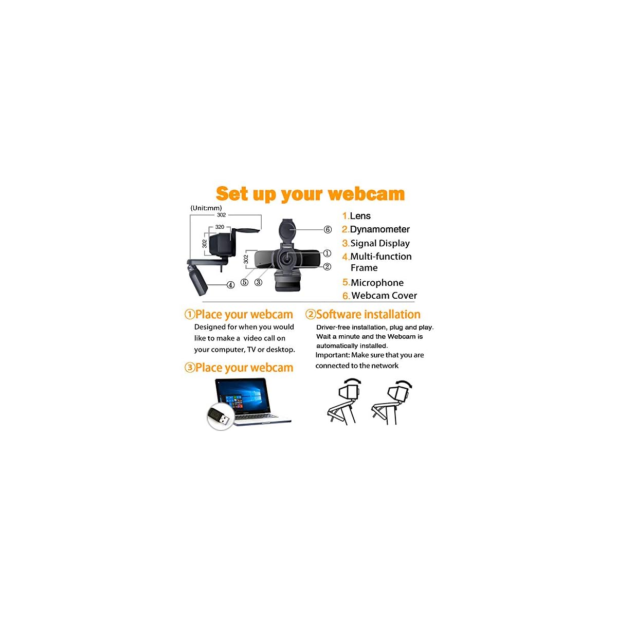 Full hd glass lens, computer camera comes with a full hd glass lens, giving you stunning clarity and detail. The glass lens of usb webcam captures sharp images to offer consistent high-definition quality