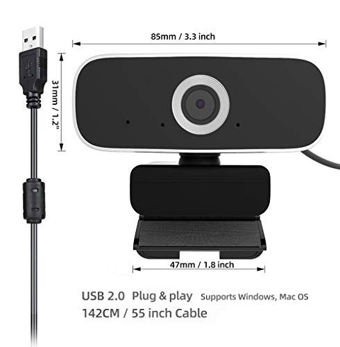 ✓ 1080P Internet Camera: This 1080P Internet camera comes with 5 layer glass HD lens and 1/2.7 CMOS 2MP image sensor delivers sharp and clear video at a fluid 30 frames/sec. Wide 90° viewing angles. Great for webinars and video conferencing.