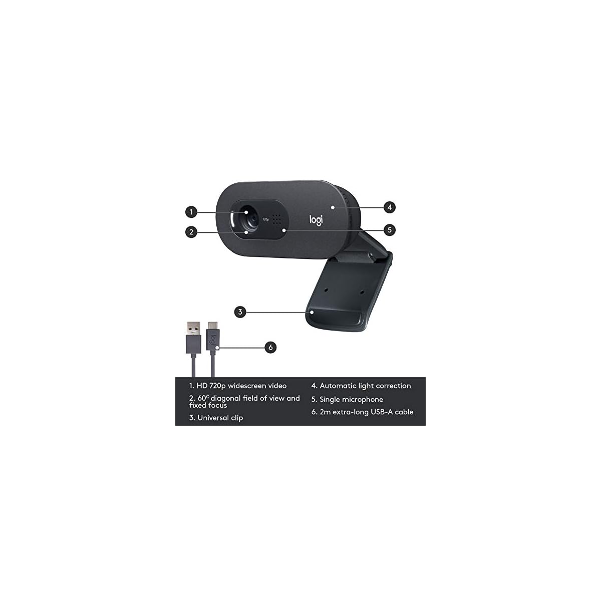 Step up from built-in laptop optics with the C505 HD Webcam that delivers crisp, smooth and colourful widescreen HD 720p video with a 60° diagonal field of view, fixed focal point and auto-light correction that adjusts to the illumination of any meeting space. The one, omnidirectional mic features noise-reduction technology and is engineered to strengthen clear, natural conversation as much as 3 metres away, even in busy environments like open workspaces and school rooms. Plus, the additional-long USB-A cable and universal clip can help you position the webcam for your computer or mount as much as 2 metres (7 feet) away.