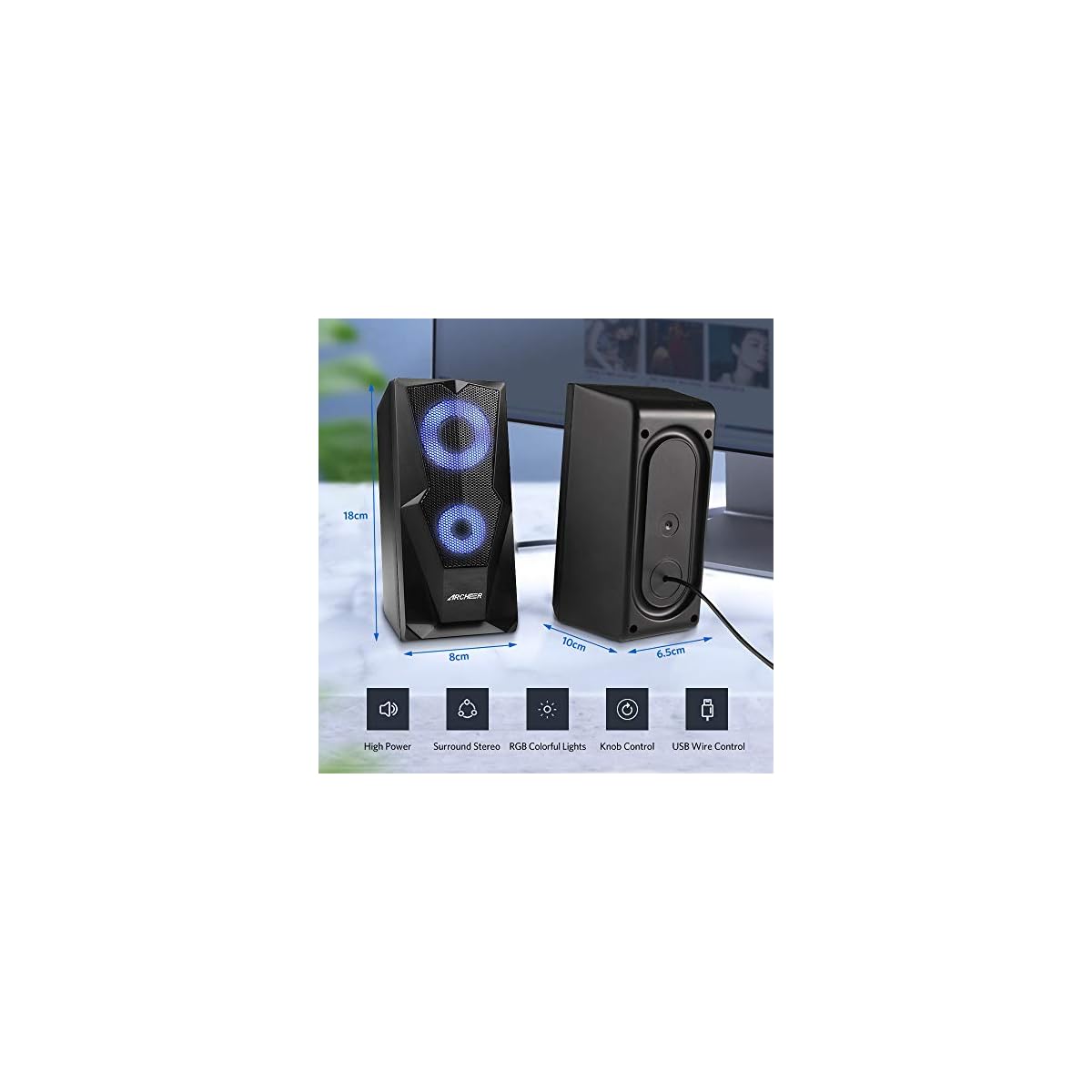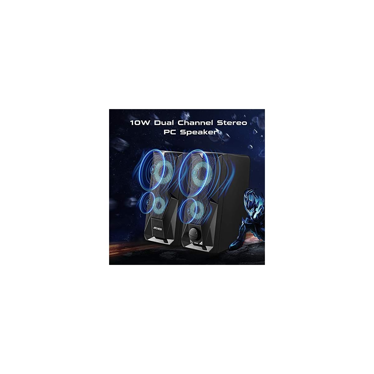 【Amazing Stereo Sound Quality】Equipped with 2 * 5 watt speakers, ARCHEER computer speaker delivers a impressive, crisp and balanced stereo sound. While the 10w speaker won’t produce the high volume of sound, but it makes little distortion with the volume cranked all the way up. Bring you a real audiovisual feast.