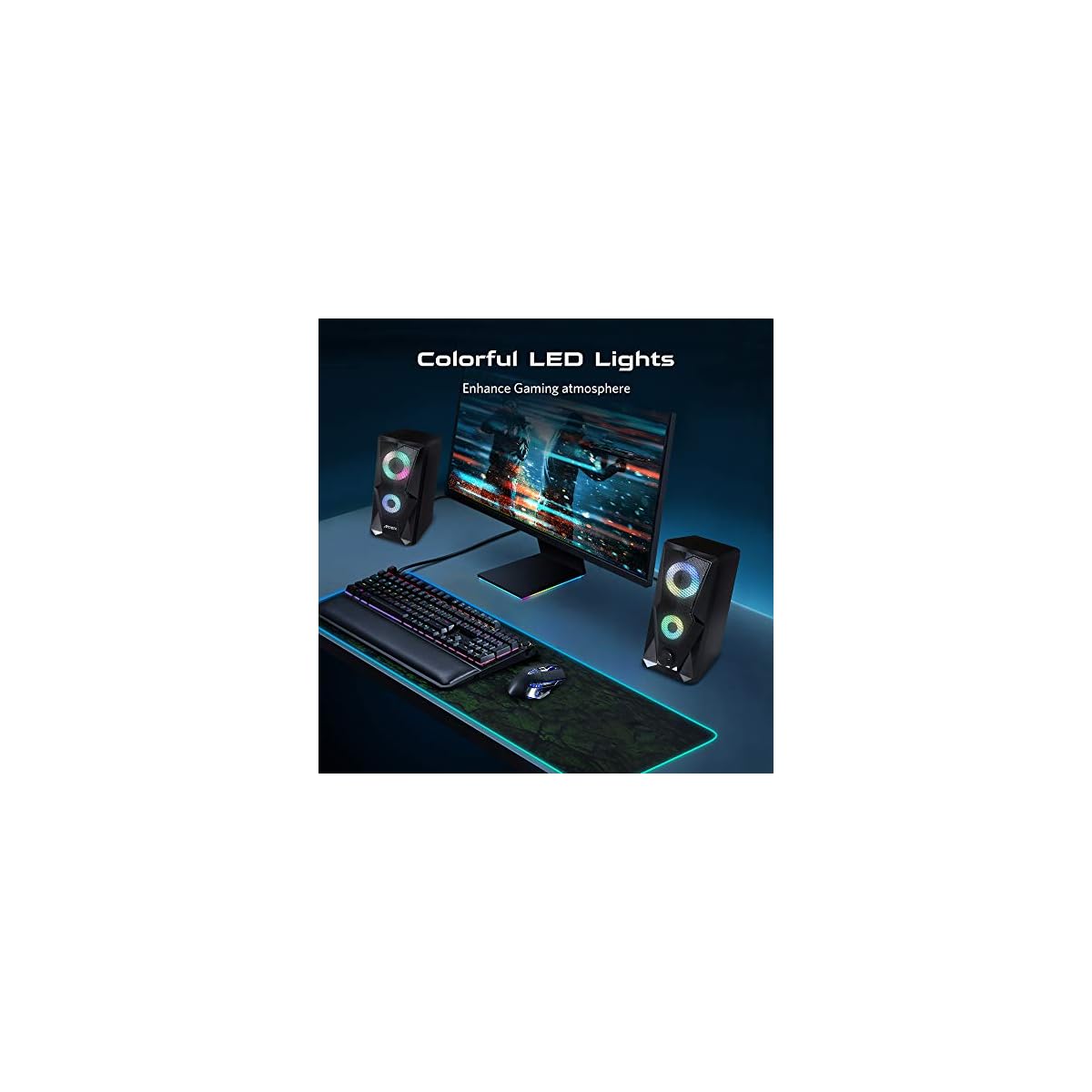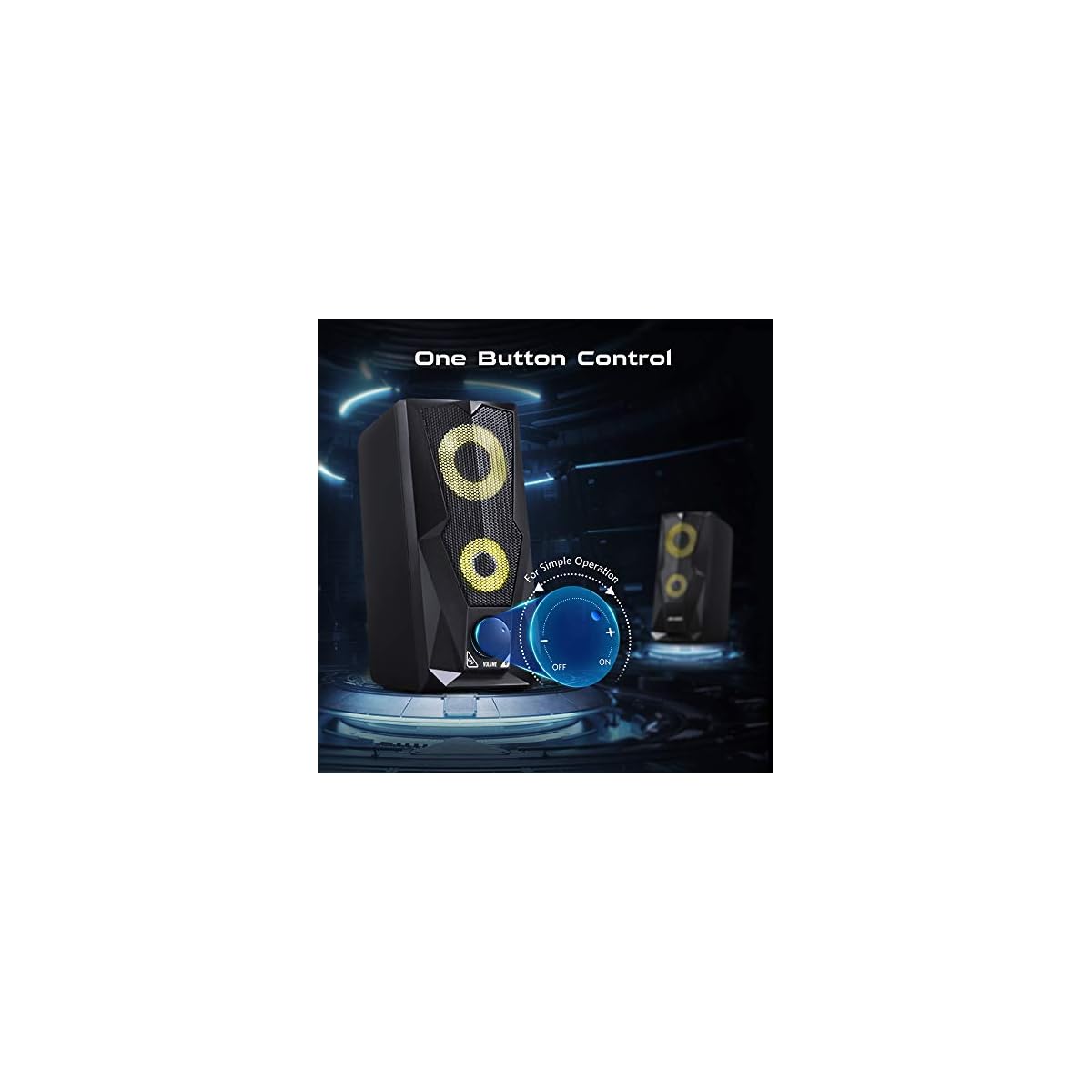 【Brilliant LED Lights】Our PC speaker offers a nice RGB rainbow color cycle: when listening music to create a very immersive lighting experience; when playing games to enhance gaming atmosphere. Make your life colorful and fun. (Very suitable for ENTERTAINMENT and spend your BORED TIME at home.)