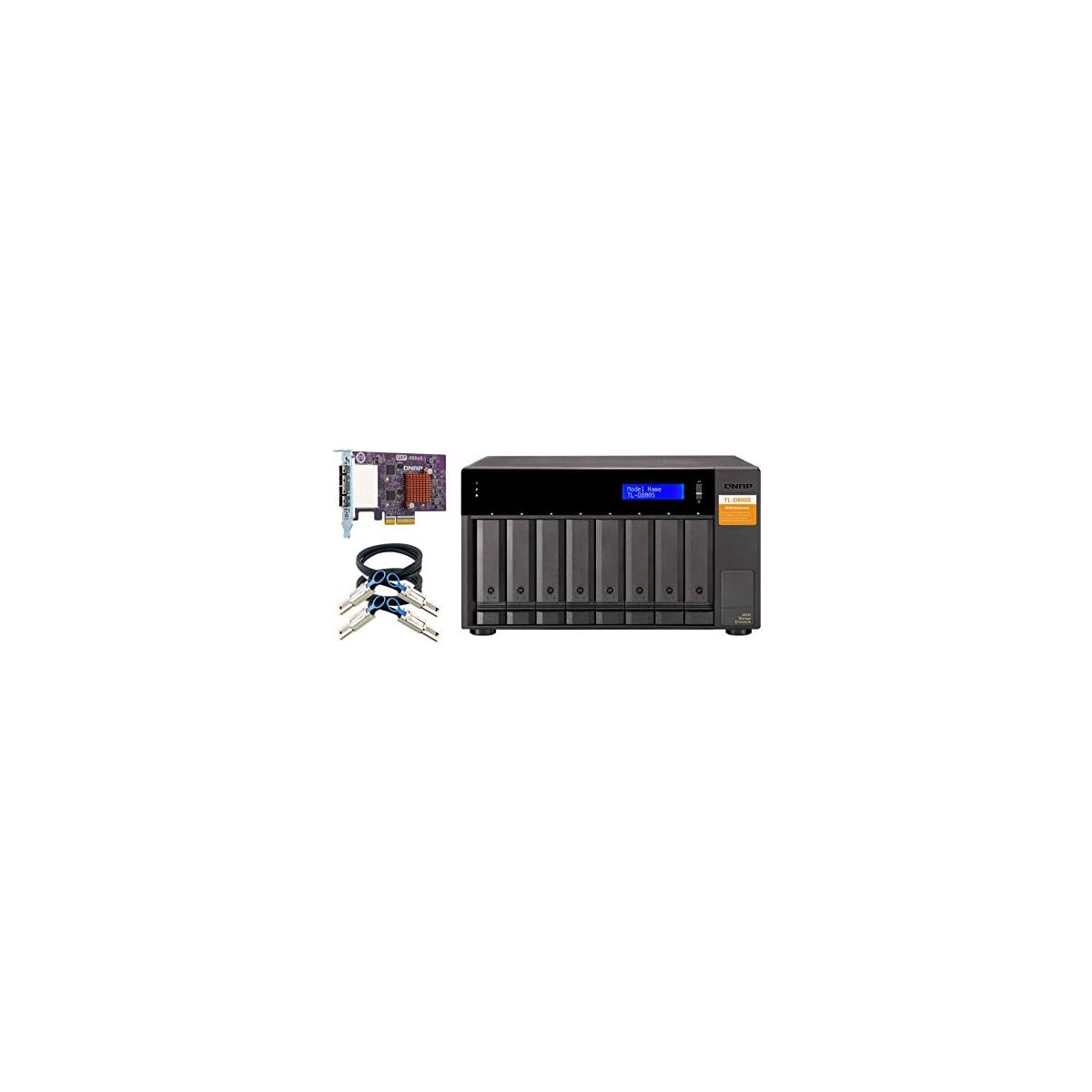 TL-D800S JBOD storage enclosure allows you to back up and expand your QNAP NAS, Windows® and Ubuntu® computers and servers. The TL-D800S features eight 3.5-inch SATA 6Gb/s drive bays and comes with a QXP PCIe card for connecting the enclosure using a SFF-8088 (or SFF-8644) cable. It provides reliable read/write performance for smooth storage and backup tasks.