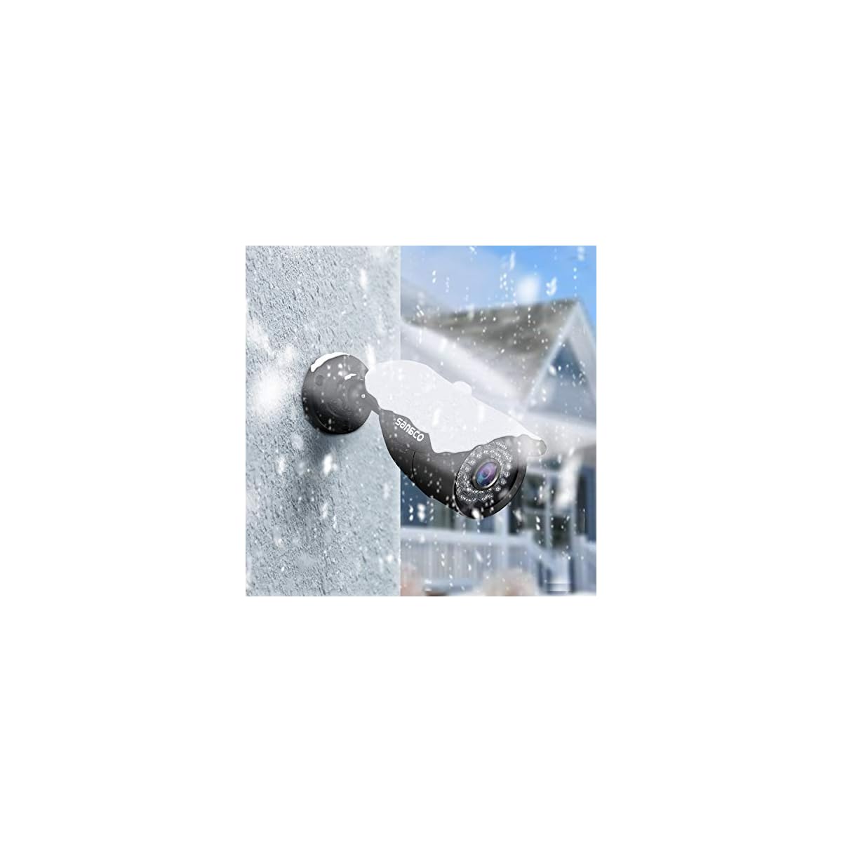 [Durable Metal Cameras] The included security cameras feature a weatherproof IP66 rating and can withstand outdoor temperatures. The cable pass-through mounting bracket further protects the cables from being tampered with to ensure year-round security coverage that never stops.