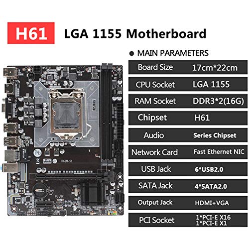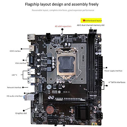 Semoic H61 H61M-S1 LGA1155 Desktop Motherboard Support Socket LGA1155 DDR3 Mico-ATX for Intel I3/I5/I7 Integrated image…
