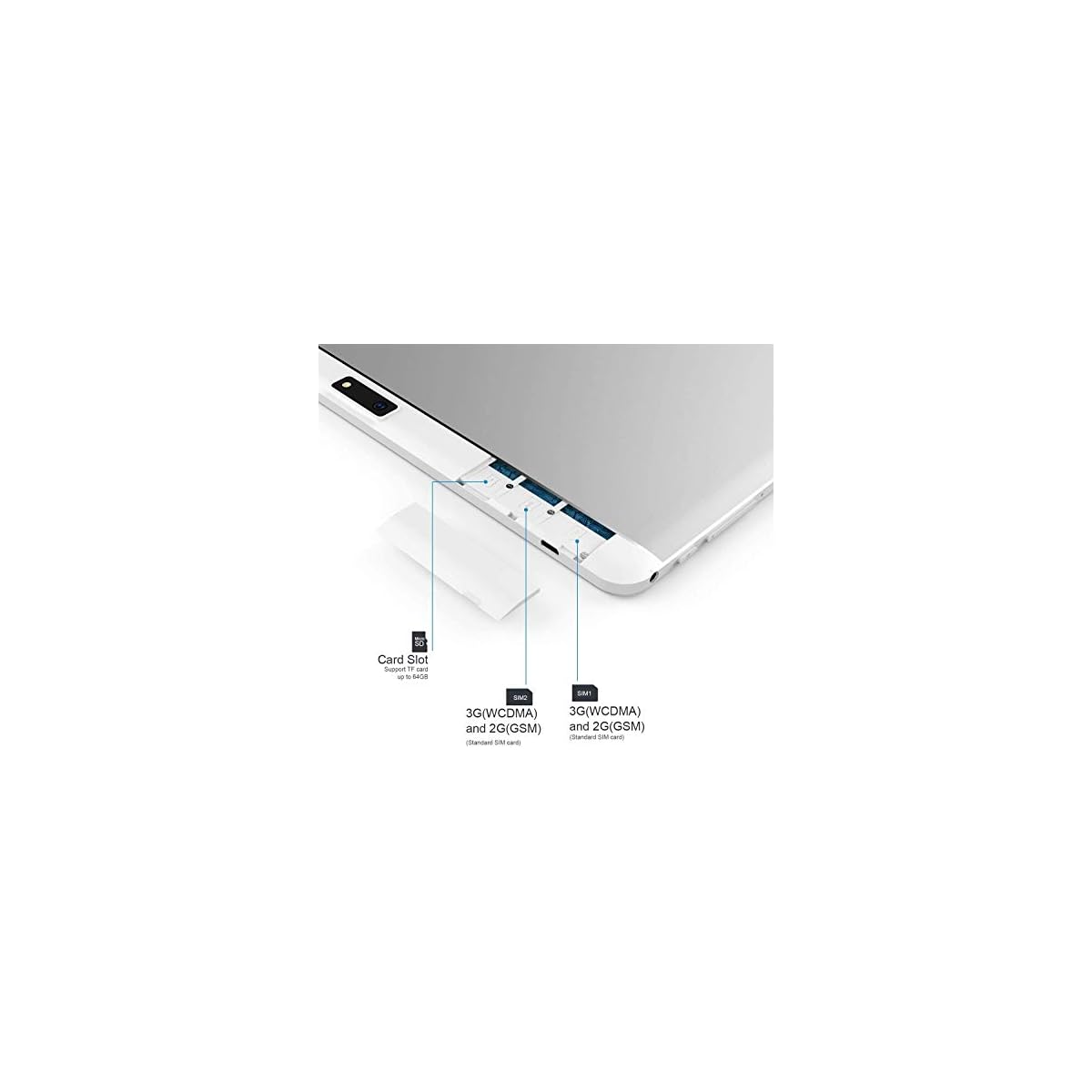 Multi-network connection tablet PC: Our unlocked phablet has dual SIM card slots, supports 2G: GSM 850/900/1800/1900MHz, 3G: WCDMA 850/1900/2100MHz. Built in 2.4Ghz WIFI, Bluetooth, GPS, and FM. (SIM card isn’t included)