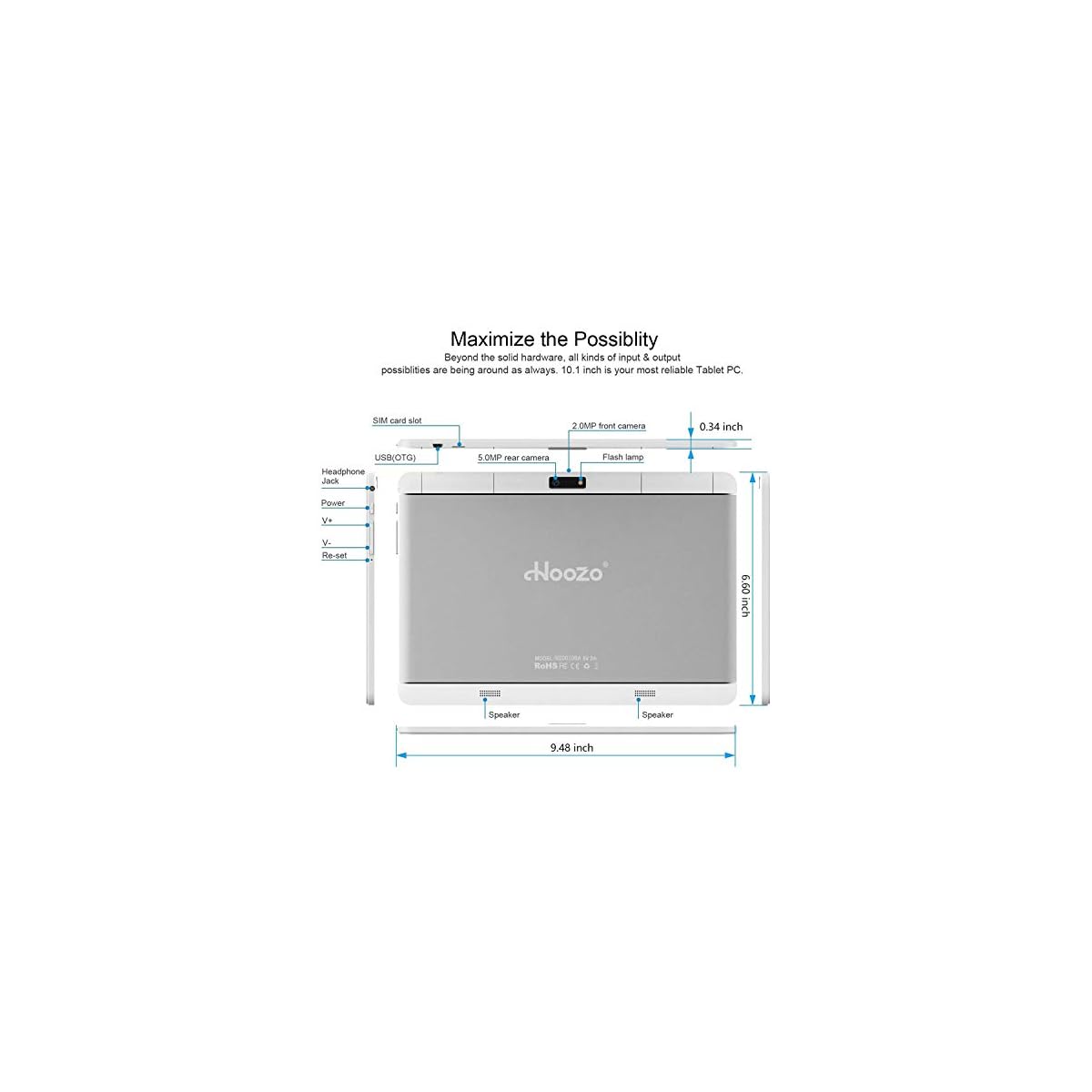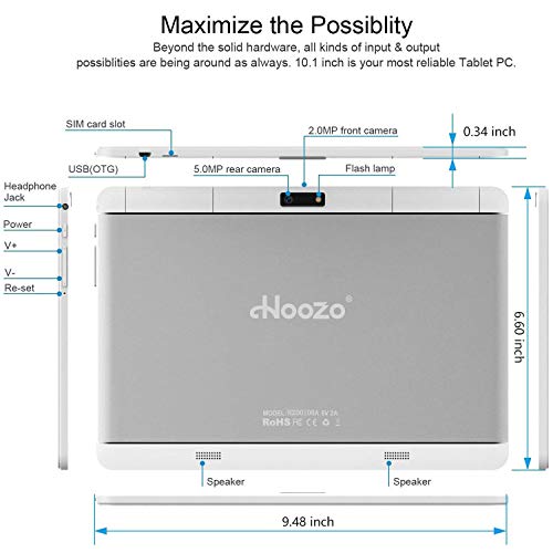 Mega storage with expandable memory: Hoozo 10 Inch tablet comes with 16GB internal storage, will also be expanded to 128GB (SD card isn’t included) to store songs, videos, photos and other files. (Note: OS and pre-installed software are occupied just a little bit of space.)