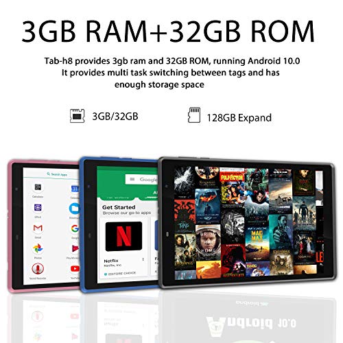 Tablet 8 Inch Android 10 Tablet PC, 3 GB RAM 32 GB ROM/ 128GB Expansion, Quad-Core, Google GMS Certified, 5000 mAh, Type…
